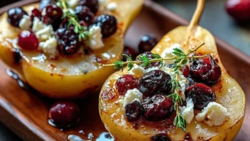 Baked Pears with Feta Honey Cranberries