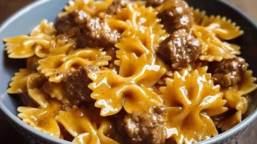 Creamy Velveeta Beef and Bow Tie Pasta
