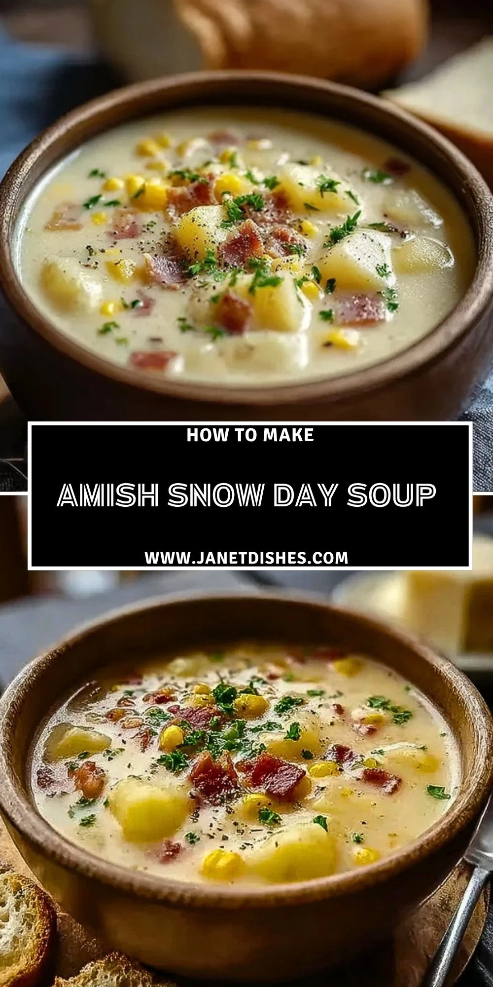 Amish Snow Day Soup is proof that the most comforting meals are often the simplest ones. With tender potatoes, creamy broth, vegetables, cheese, and a little smoky bacon, it creates a bowl that feels warm, filling, and wonderfully homemade. Whether you make it for a snowy day, a chilly evening, or just because you want something cozy on the table, this is the kind of soup that brings everyone back for another spoonful.