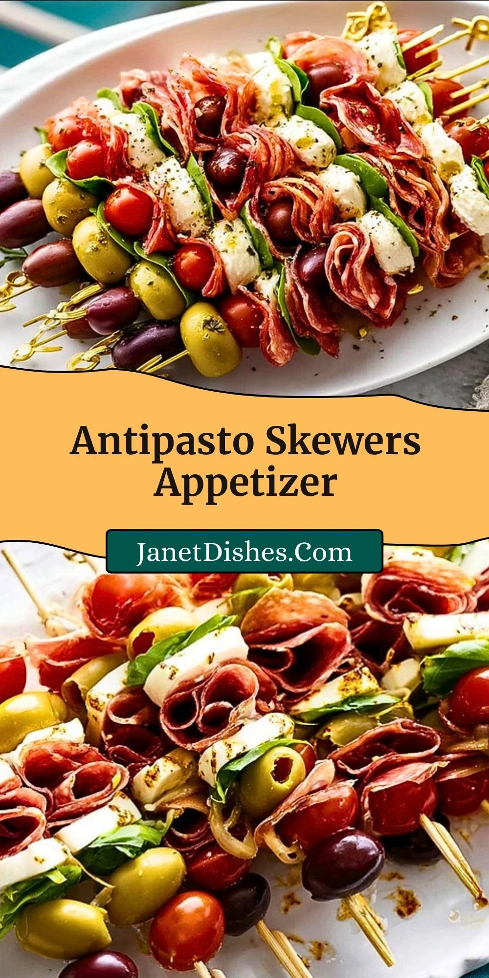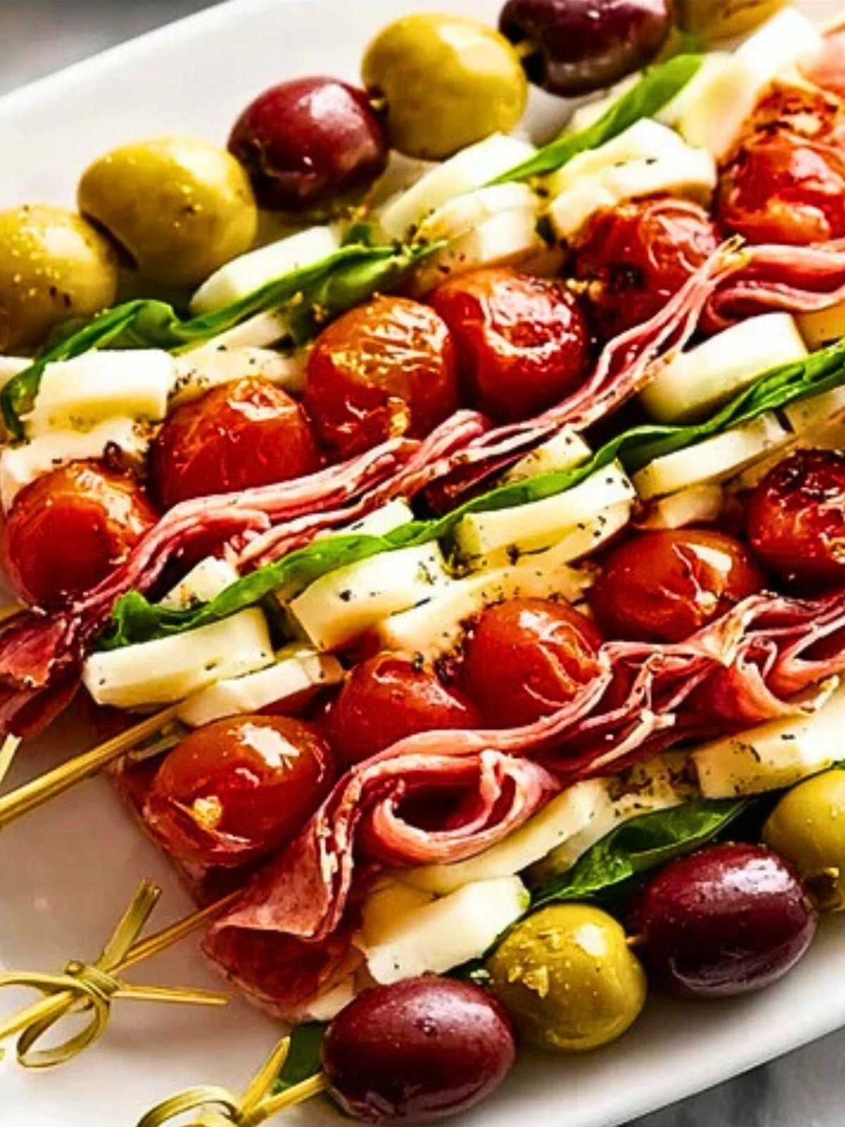 These Antipasto Skewers are like a party on a stick. They combine everything you love about an Italian antipasto platter — savory cured meats, creamy cheese, marinated vegetables, and briny olives — all stacked together into a beautiful, bite-sized arrangement. Not only are they bursting with flavor and texture, but they’re also incredibly easy to prep ahead, making them perfect for entertaining.