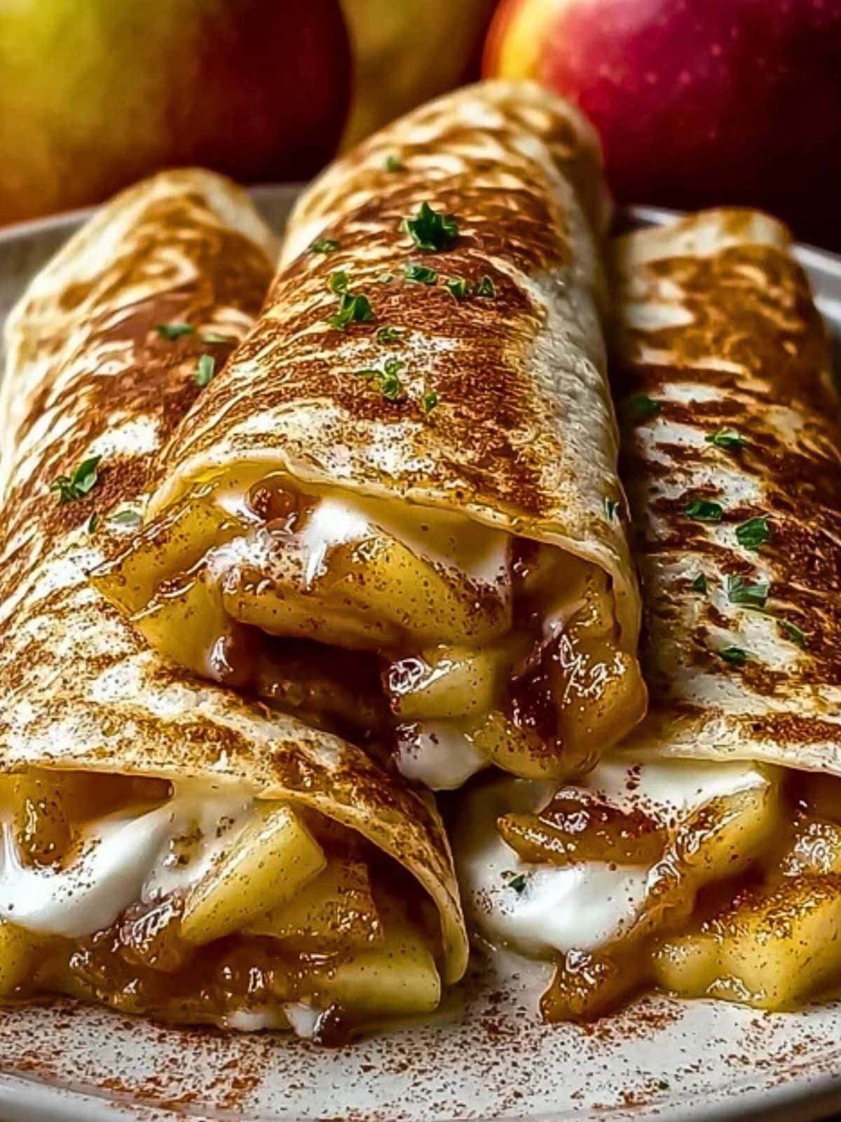 Lay a tortilla flat and spread cream cheese on one half (or sprinkle shredded cheddar if you’re going that route). Spoon the apple filling over the cheese, then fold the tortilla in half to seal.