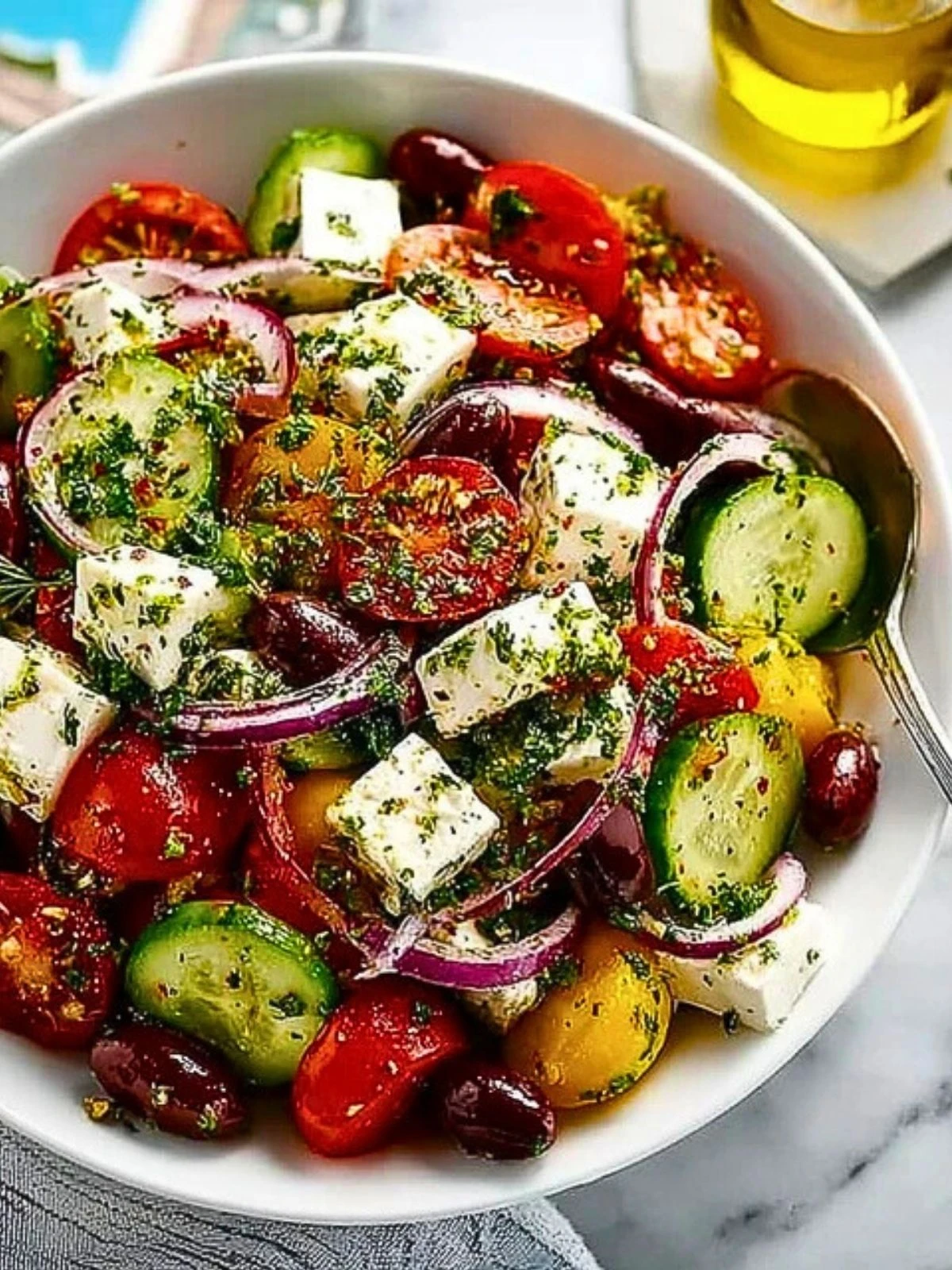 The Authentic Mediterranean Greek Salad is more than just a side dish—it’s a flavor-packed journey to the Aegean coast. Quick to prepare and endlessly refreshing, this salad is your perfect answer to warm weather cravings or light, wholesome meals. Keep it simple, use the best ingredients you can find, and let each bite transport you straight to a sun-drenched Greek taverna.