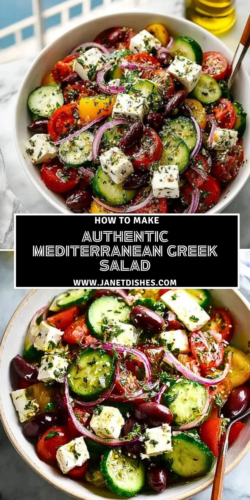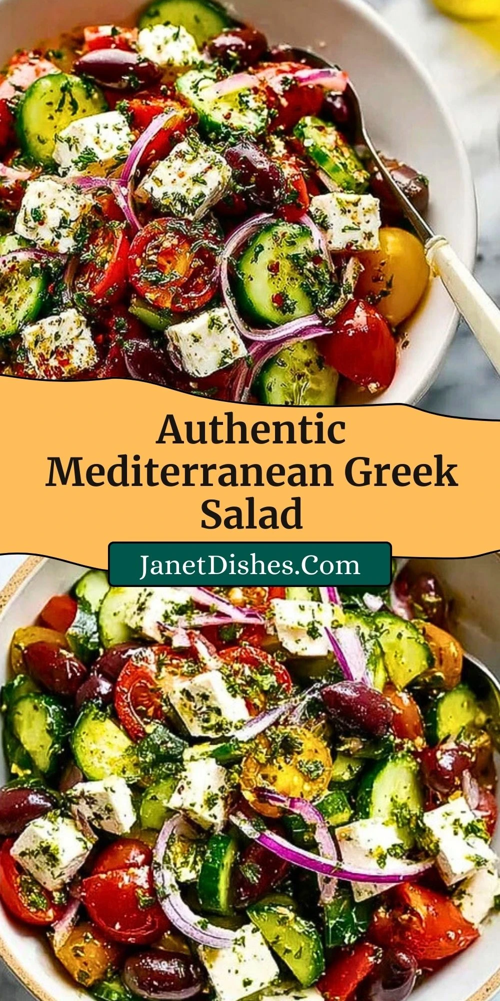 This Authentic Mediterranean Greek Salad is a refreshing, vibrant dish made with juicy tomatoes, crisp cucumbers, red onions, Kalamata olives, creamy feta, and a bold olive oil dressing. Perfect for summer meals, this Greek salad recipe is healthy, gluten-free, vegetarian, and full of Mediterranean flavors.