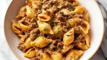 Garlic Butter Beef & Cheesy Bowtie Pasta