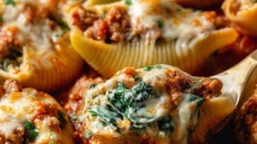 Cheesy Ground Turkey & Spinach Stuffed Shells