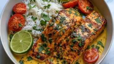 One-Pan Coconut Curry Salmon with Garlic Butter