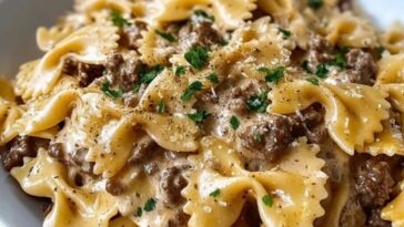 Creamy Parmesan Garlic Beef Bowtie Pasta