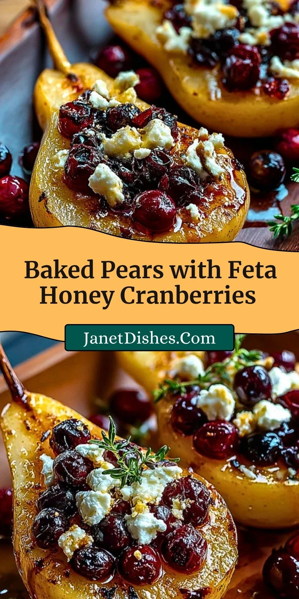 Baked Pears with Feta Honey Cranberries is an easy sweet and savory pear recipe made with tender baked pears, creamy feta, tart cranberries, and warm honey for a simple appetizer, elegant side dish, or holiday starter.