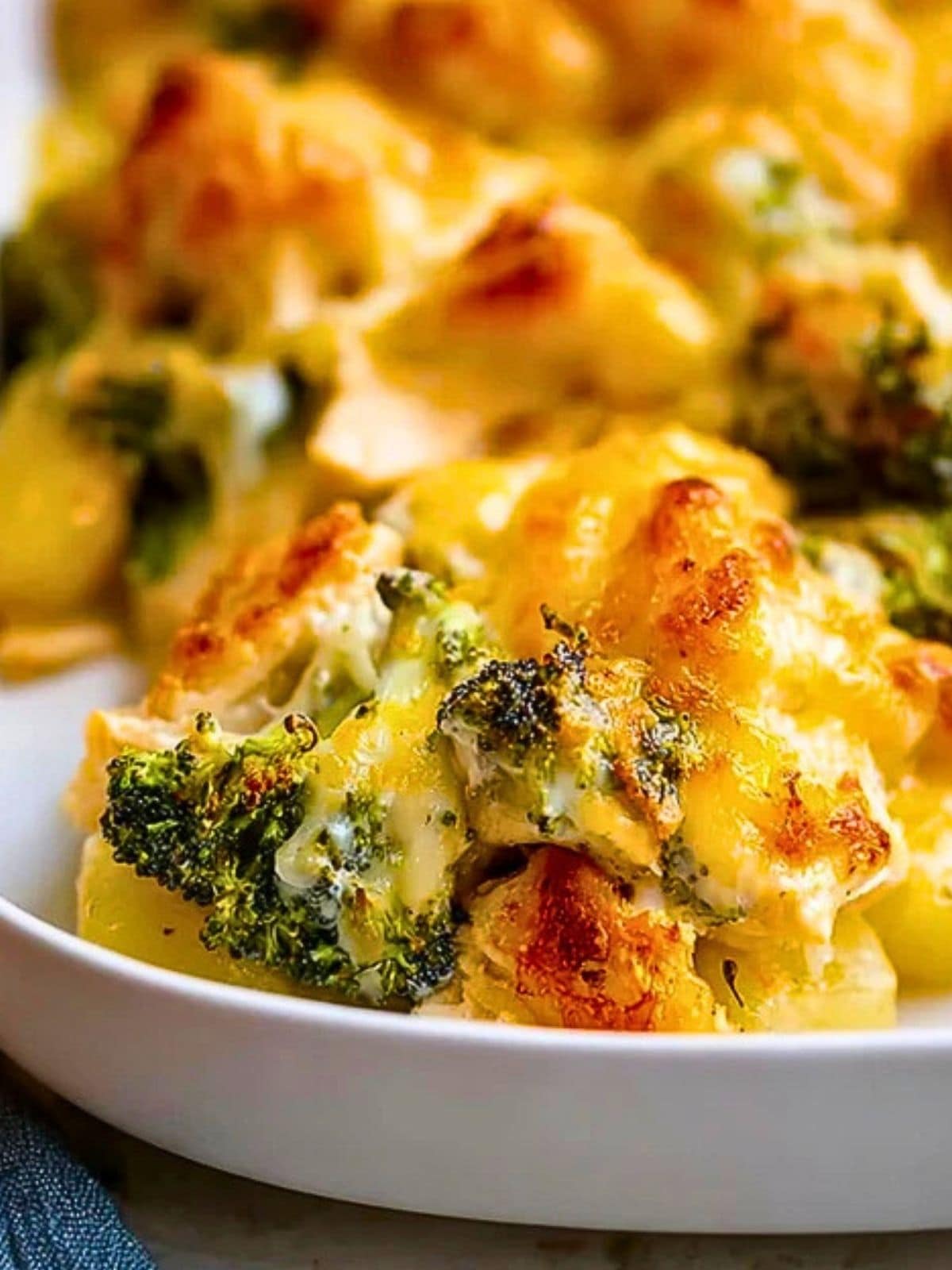 Creamy, hearty, and perfectly comforting, this Baked Potato Chicken and Broccoli Casserole brings everything you love about a well-balanced dinner into one delicious dish. Roasted potatoes, juicy chicken, and vibrant broccoli are baked in a creamy cheese sauce until golden and bubbly, making this the kind of casserole you return to all season long.