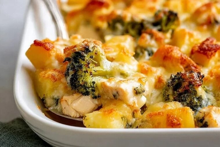 Creamy, hearty, and perfectly comforting, this Baked Potato Chicken and Broccoli Casserole brings everything you love about a well-balanced dinner into one delicious dish. Roasted potatoes, juicy chicken, and vibrant broccoli are baked in a creamy cheese sauce until golden and bubbly, making this the kind of casserole you return to all season long.
