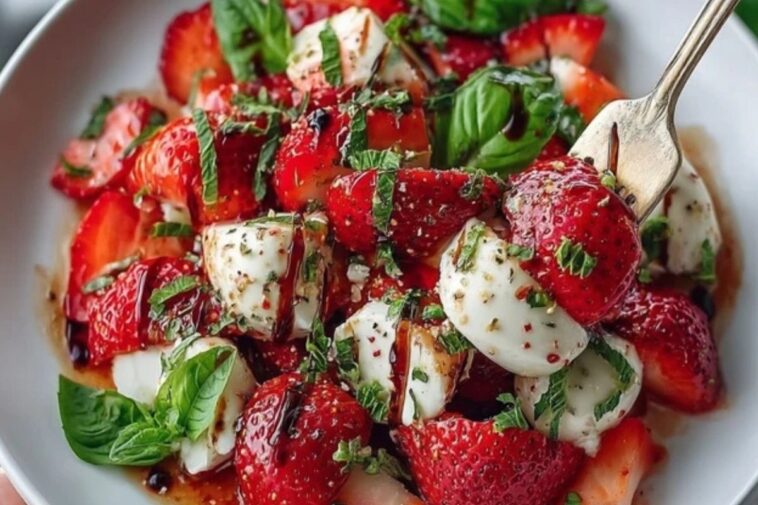 There’s something undeniably elegant about this Balsamic Strawberry Caprese. It takes the classic Italian caprese salad and gives it a vibrant, summery twist by swapping tomatoes for juicy, ripe strawberries. The result is a salad that’s fresh, slightly sweet, tangy, and surprisingly addictive.