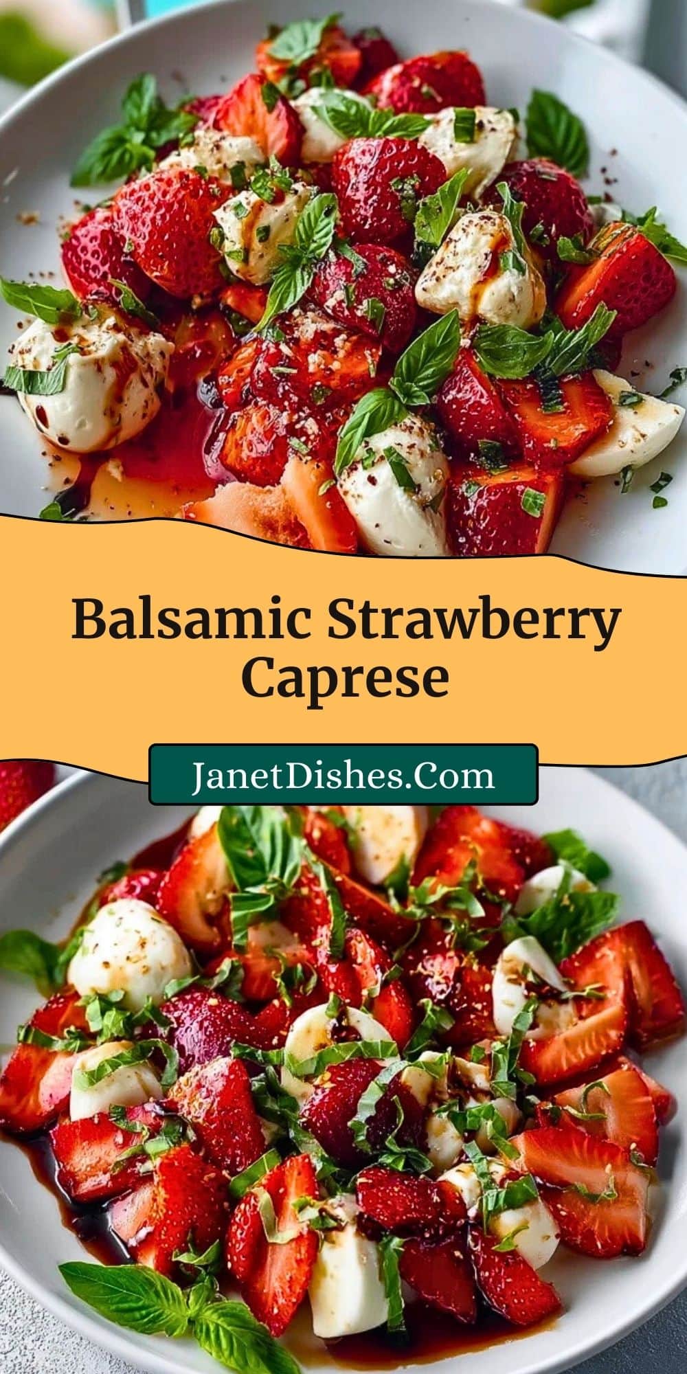 Balsamic Strawberry Caprese is meant to be served fresh and chilled. The strawberries release juice over time, so for the best texture and flavor, prepare and serve immediately. It feeds about 4 people as an appetizer or 2 if you’re making it the main focus.