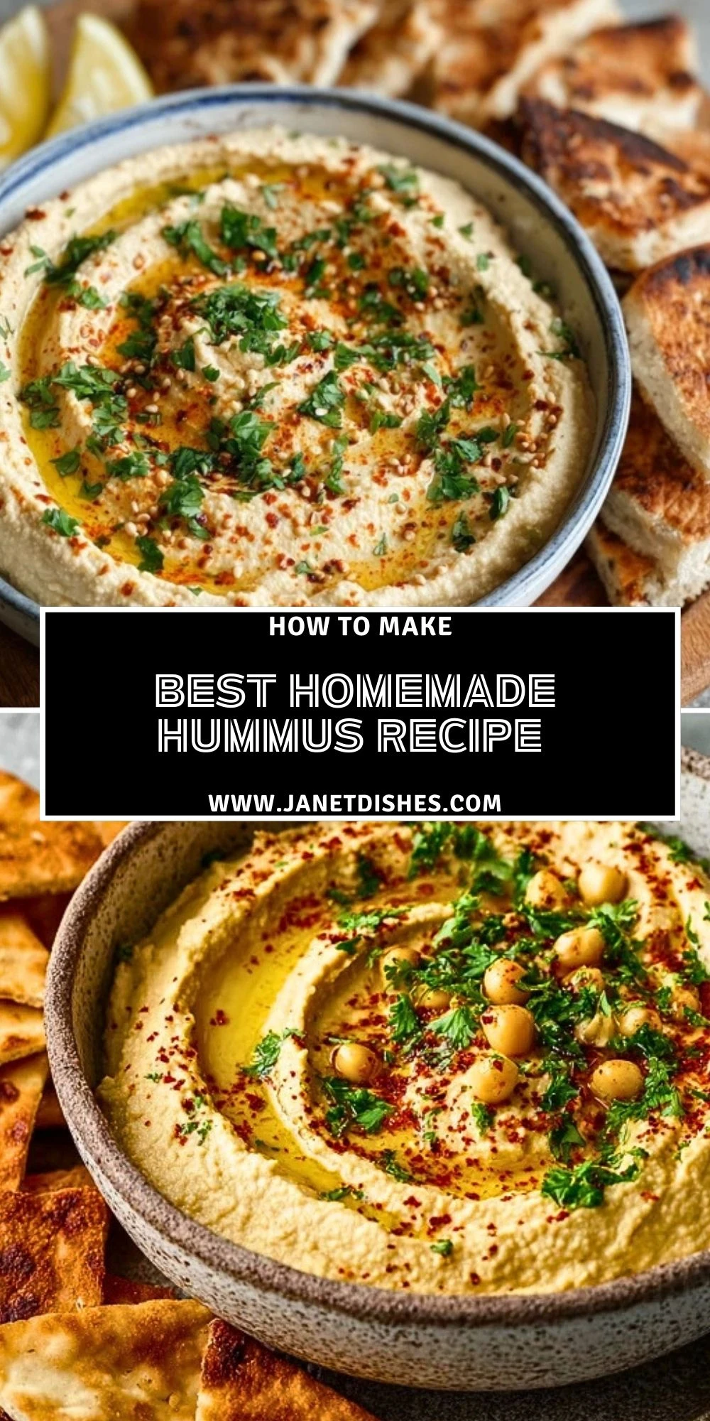 This Best Homemade Hummus Recipe is creamy, smooth, and bursting with classic Mediterranean flavors. Made with chickpeas, tahini, lemon, and garlic, it’s an easy vegan dip perfect for snacks, spreads, or party appetizers. Learn how to make hummus from scratch in under 10 minutes!