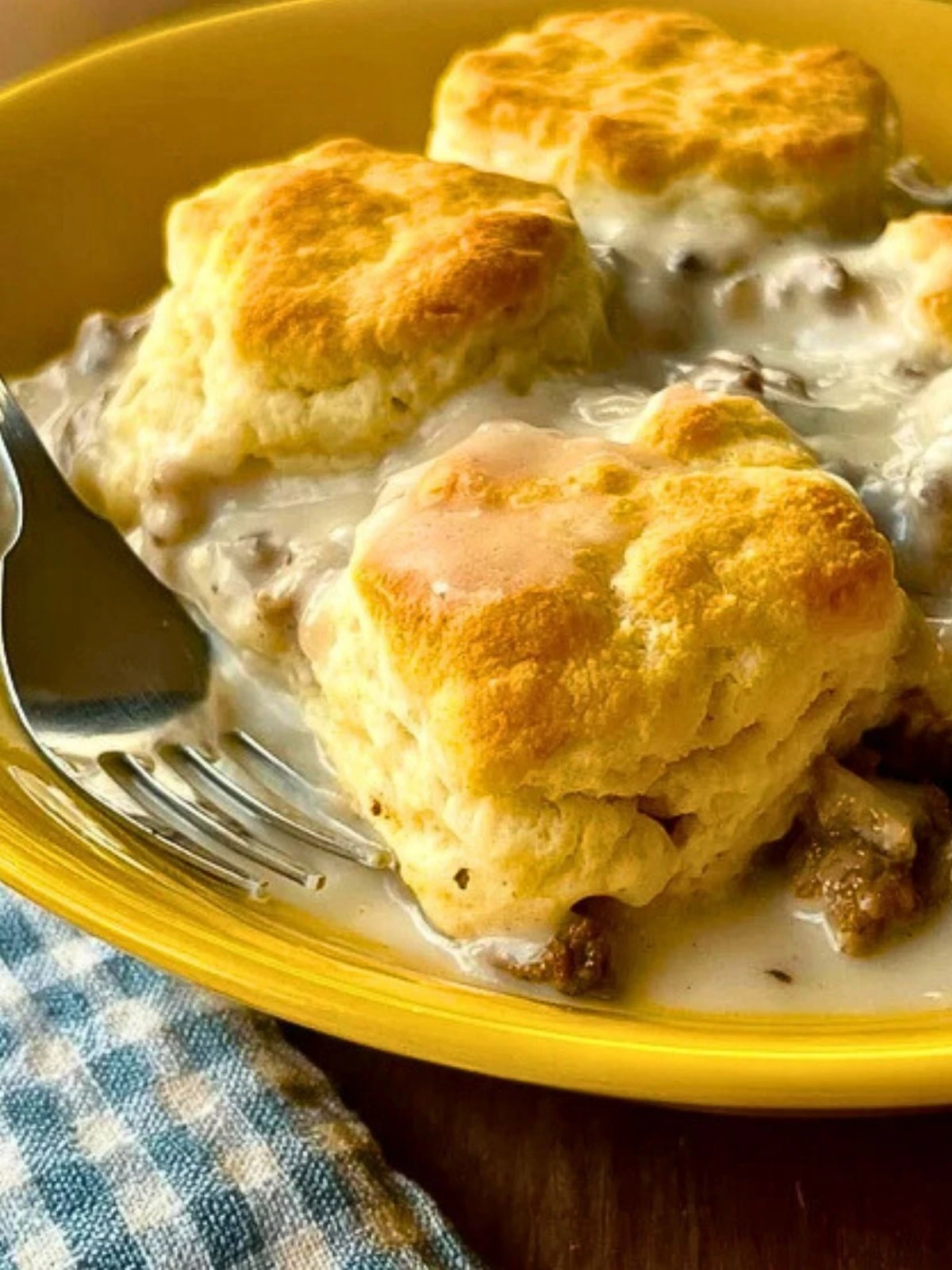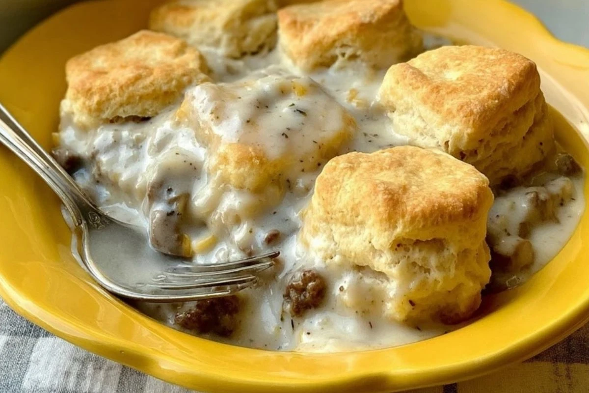 You can absolutely use refrigerated canned biscuits for this recipe, and they work beautifully. But if you have the time and love making biscuits from scratch, go for it. Just make sure they’re not too thick so they cook through evenly. A buttery Southern-style biscuit pairs especially well with the savory sausage gravy.