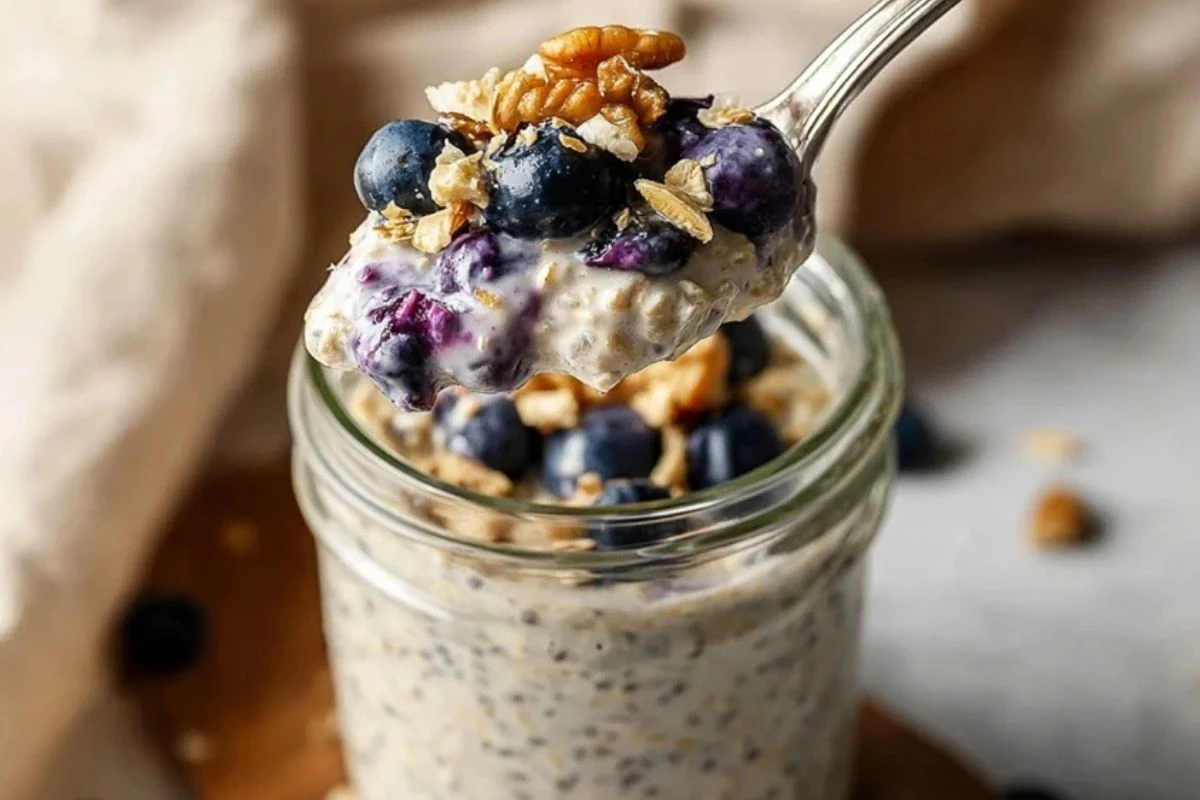 Blueberry overnight oats with yogurt is a healthy make-ahead breakfast recipe featuring oats, Greek yogurt, blueberries, and chia seeds. Packed with fiber, protein, and antioxidants, it’s perfect for busy mornings or meal prep. Enjoy a creamy, fruity, and satisfying breakfast in minutes!