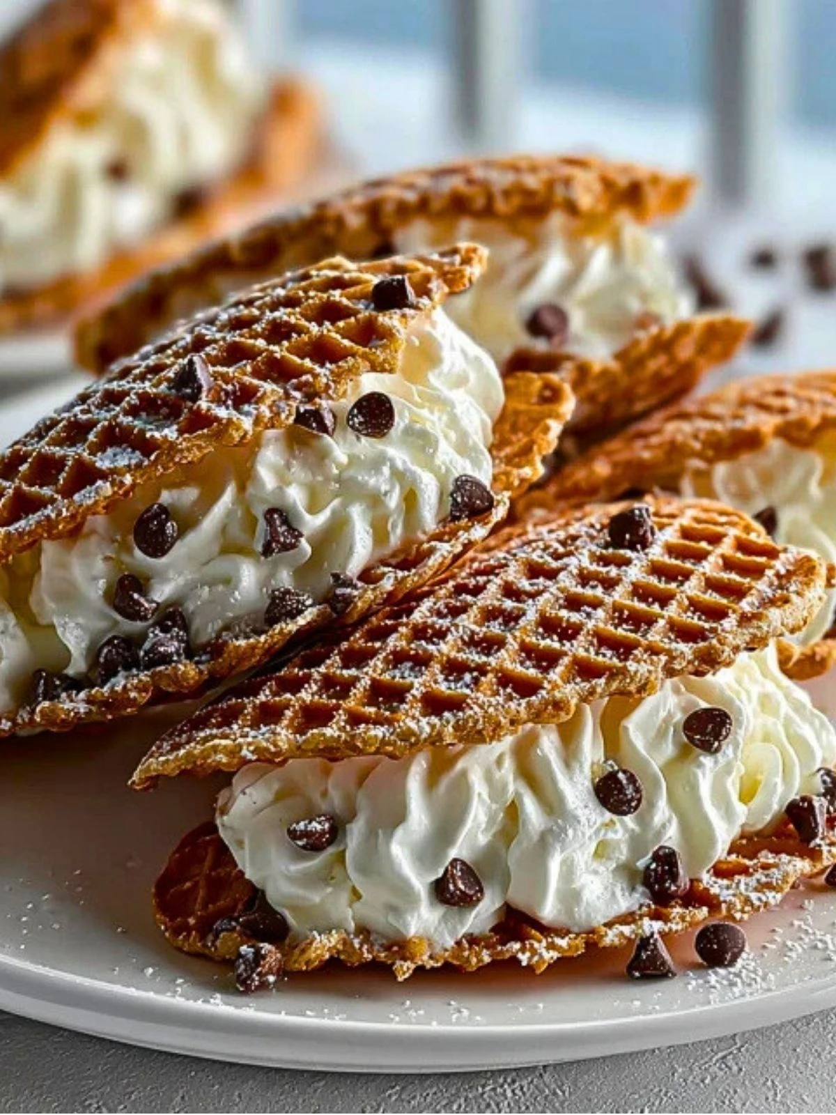 You can use store-bought pizzelles to save time, or go homemade for a truly fresh flavor. Traditional anise-flavored pizzelles work beautifully with the cannoli cream, but vanilla, almond, or even chocolate pizzelles will also complement the filling. Just make sure they are crisp and not too thick—thin, delicate pizzelles give the best snap and contrast to the creamy center.