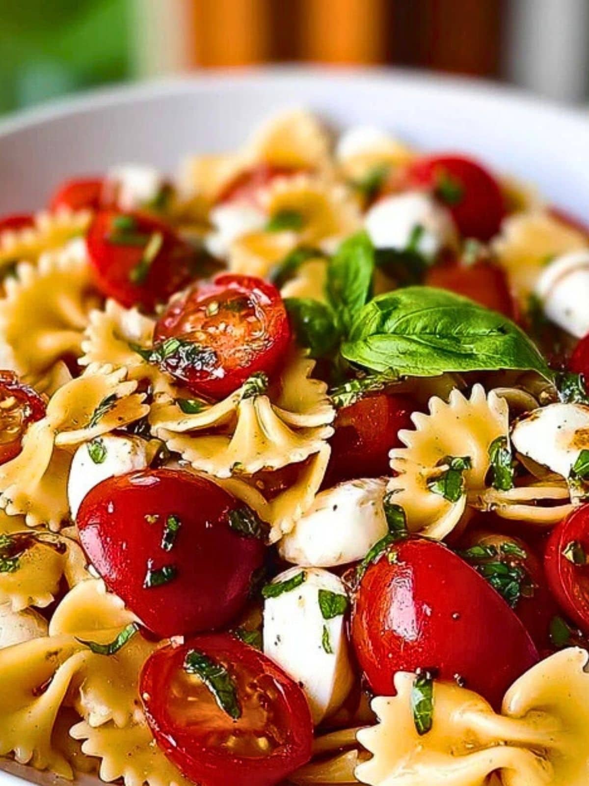 This refreshing Caprese Pasta Salad is a perfect summer recipe featuring juicy cherry tomatoes, creamy mozzarella, and fresh basil tossed in a light balsamic vinaigrette. Ideal for potlucks, picnics, and quick dinners, this pasta salad is bursting with Italian-inspired flavors. A crowd-pleasing side or main dish that’s easy, vegetarian, and delicious.