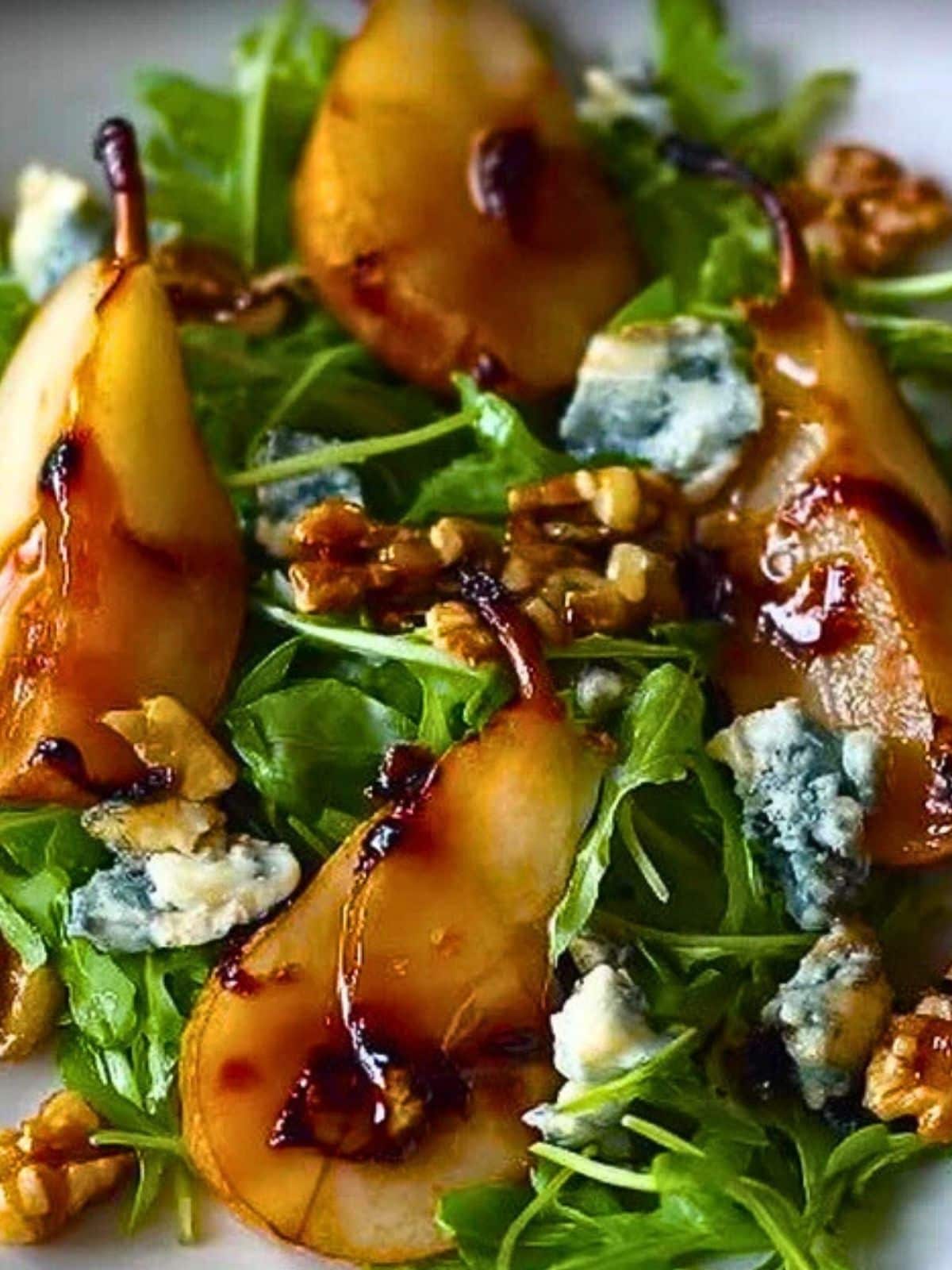 This salad is the perfect balance of contrasts: sweet and salty, creamy and crisp, warm and cold. The pears are gently caramelized until golden and tender, then paired with sharp blue cheese for a flavor punch. Arugula adds a peppery bite, while walnuts or pecans bring in that necessary crunch.