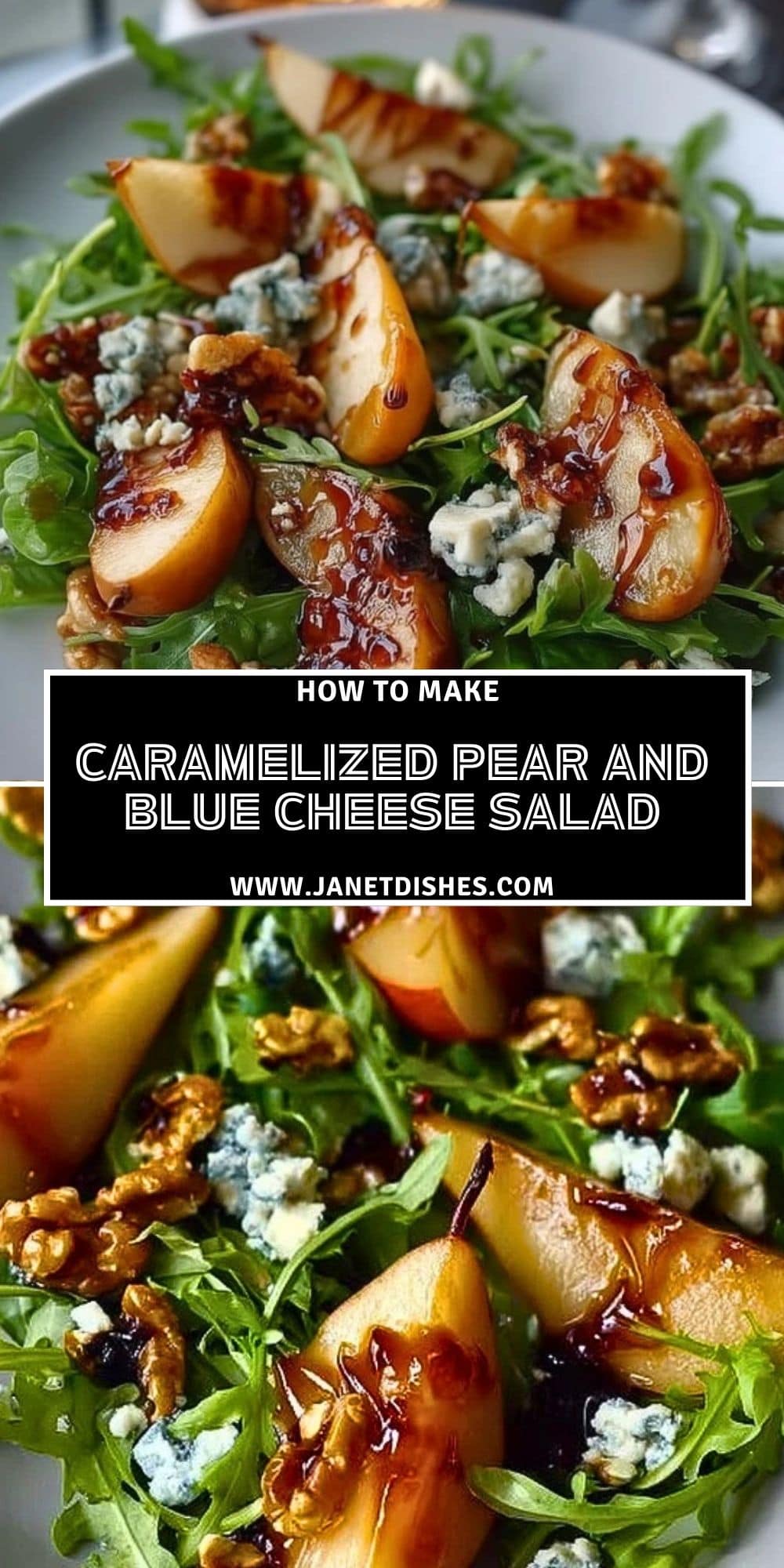 In a large bowl or platter, lay down a bed of fresh arugula. Top with the warm caramelized pears, crumbled blue cheese, and toasted nuts. Drizzle the vinaigrette over everything just before serving.
