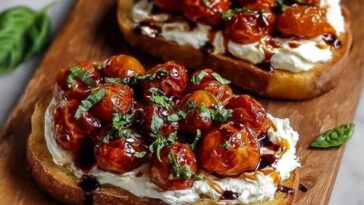 • Crispy Sourdough with Whipped Ricotta and Roasted Tomatoes
