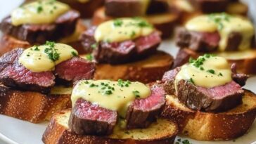 • Grilled Beef Tenderloin Crostini with Béarnaise Sauce