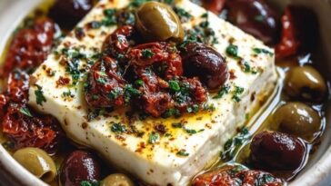 • Mediterranean Baked Feta with Olives & Sun-Dried Tomatoes