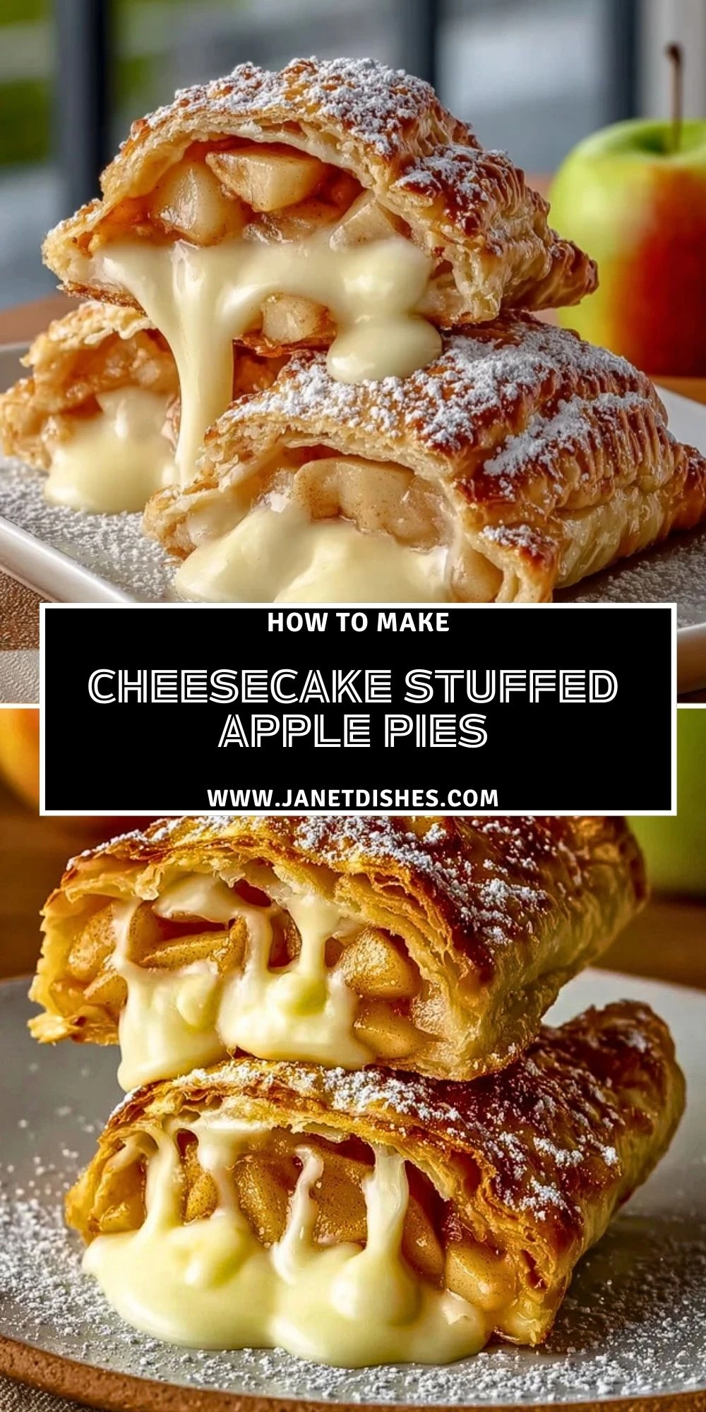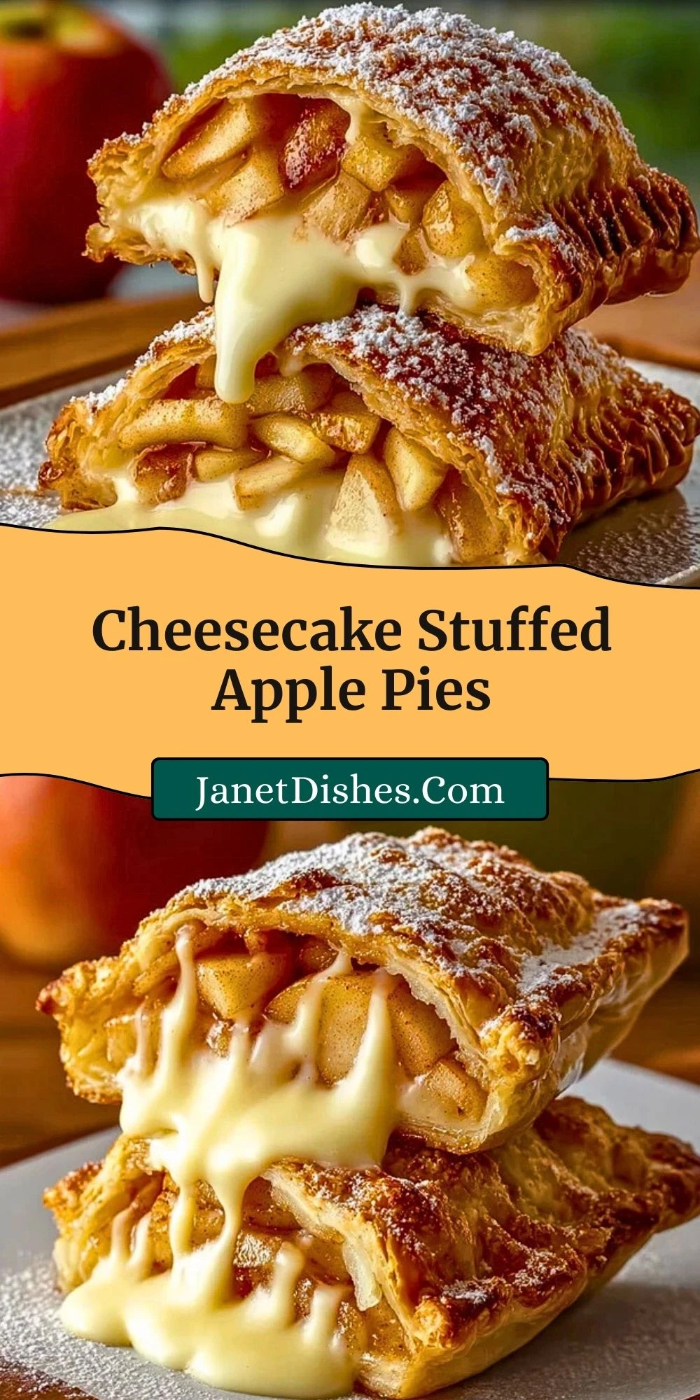 These stuffed apple pies are best served warm from the oven, when the cheesecake is just soft enough and the pastry is perfectly crisp. A scoop of vanilla ice cream or a drizzle of caramel sauce turns them into something extra decadent.