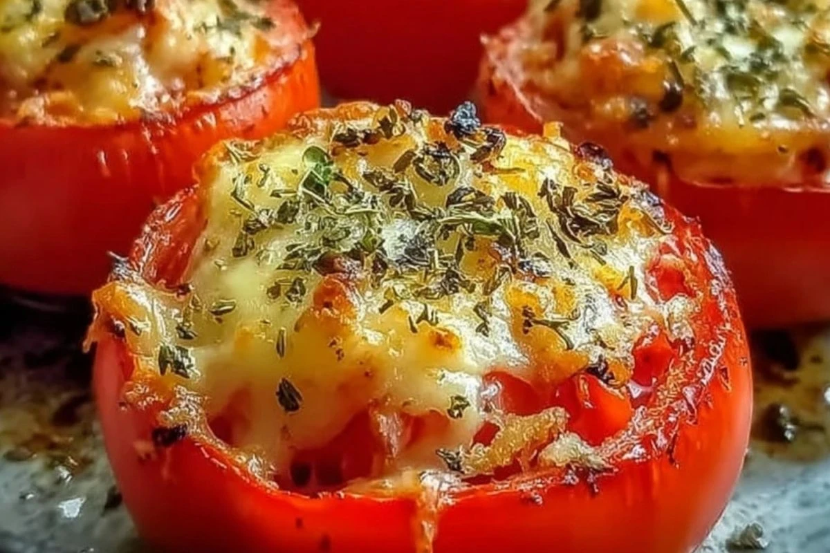 Cheesy Baked Stuffed Tomatoes are a delicious vegetarian recipe made with juicy tomatoes, melty cheese, garlic, and herbs. This easy oven-baked tomato dish makes a comforting and low-carb side or light main meal. Perfect for summer produce or weeknight dinners!