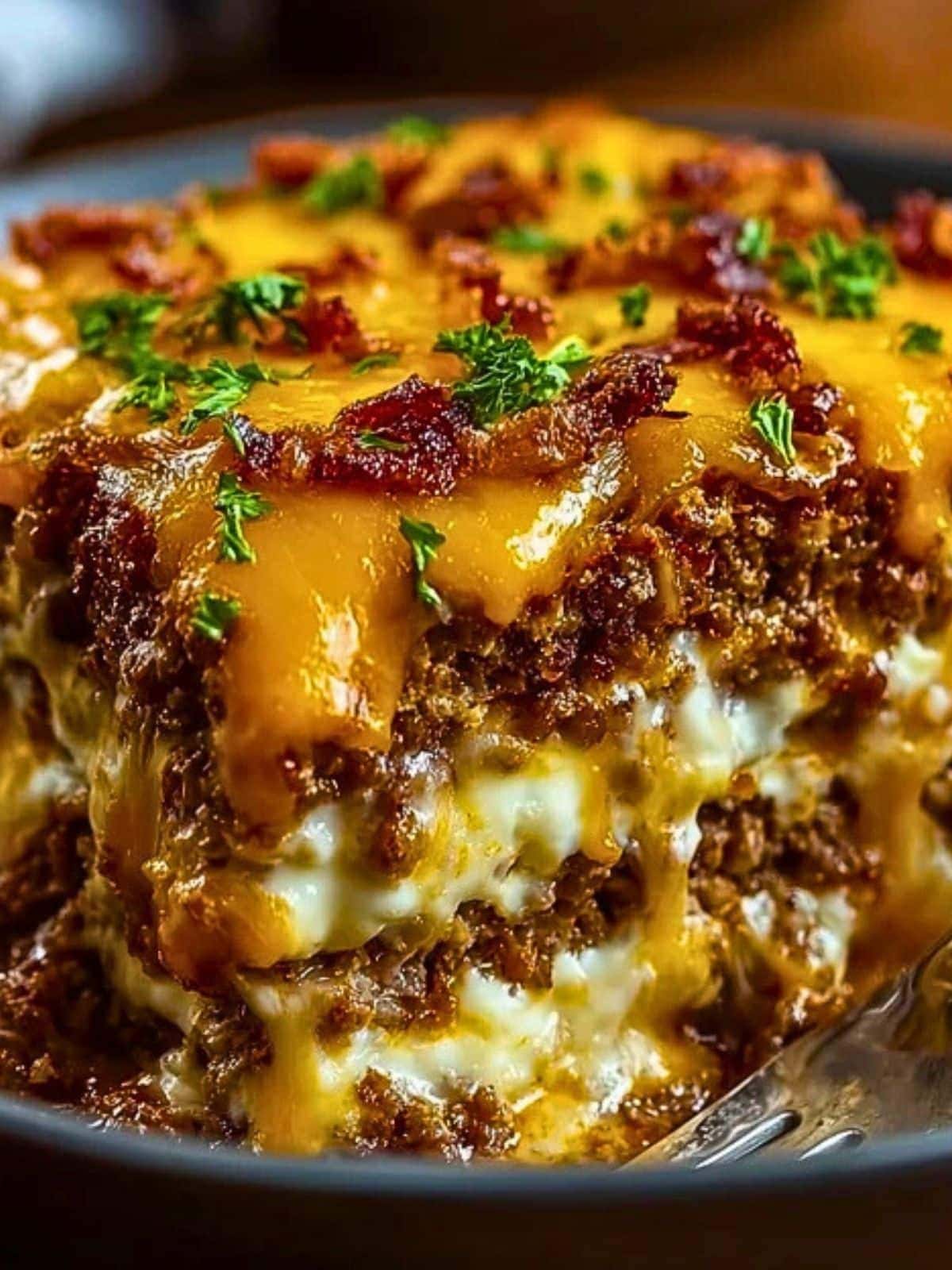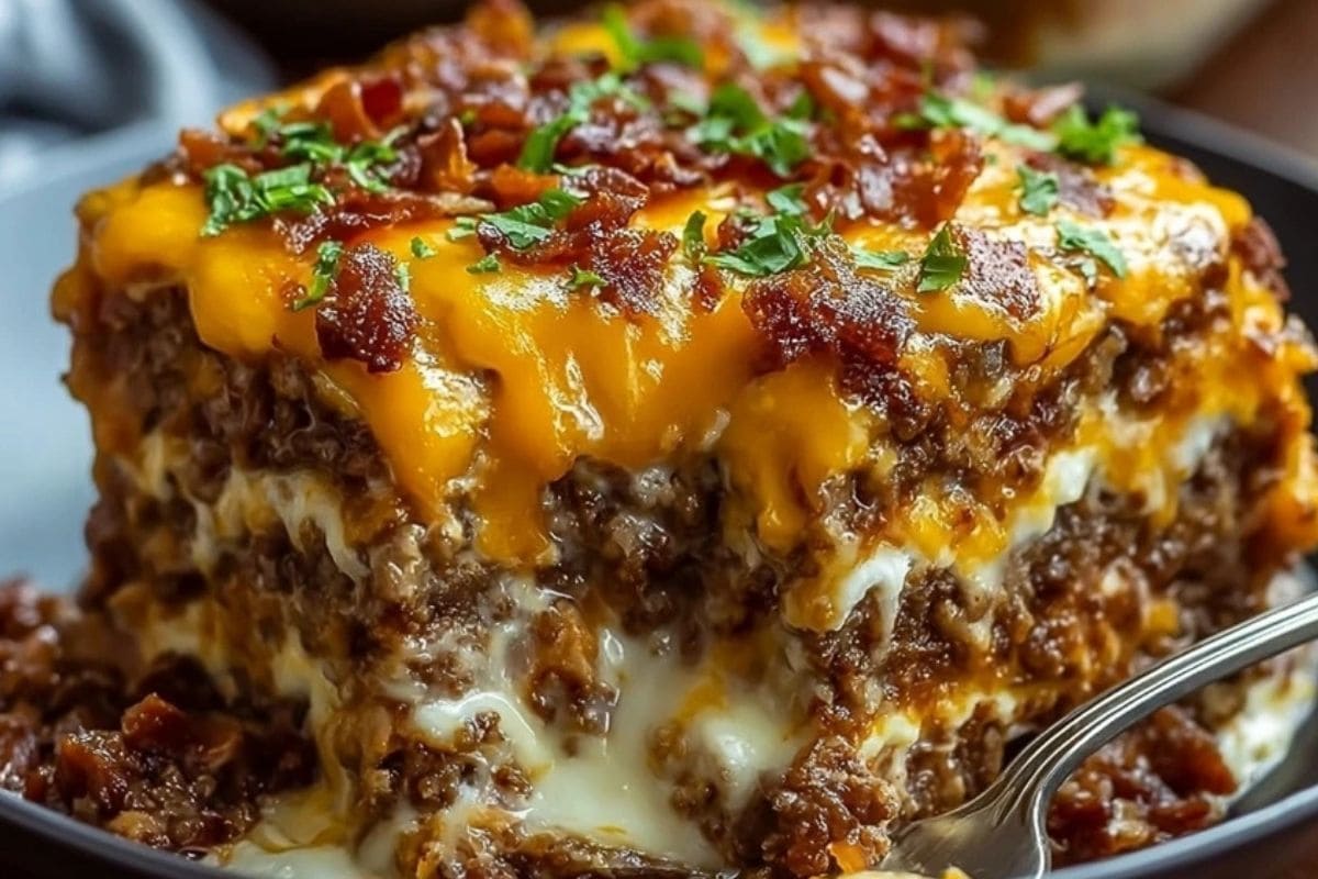 This cheesy meatloaf casserole is the ultimate comfort food dinner. Made with seasoned ground beef, creamy mashed potatoes, and melty cheddar cheese, it’s an easy family-friendly weeknight meal. Perfect for meal prep, leftovers, and cozy dinners.