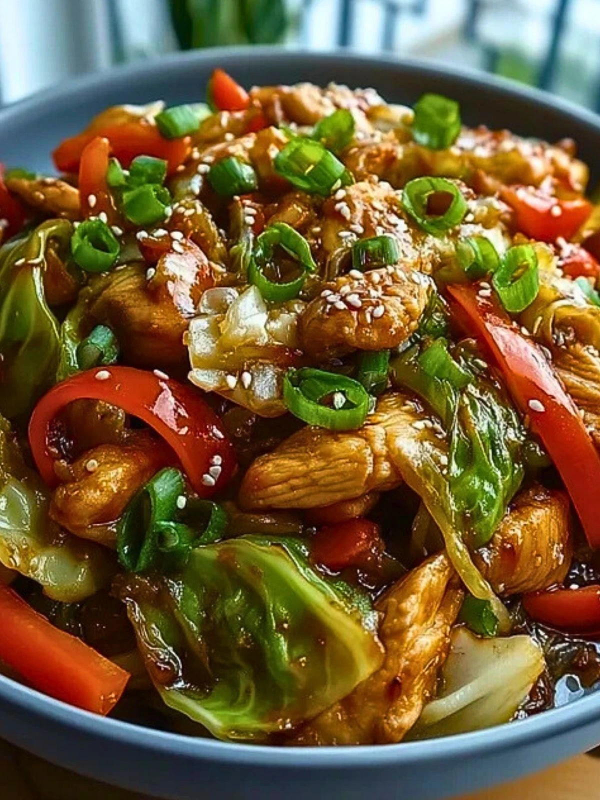 It also makes great use of cabbage, which holds up well in the stir-fry process, soaking in the sauce while staying just crisp enough. The chicken brings protein, and when paired with garlic, ginger, and sesame oil, you get all those cozy Chinese takeout vibes without the delivery fee.