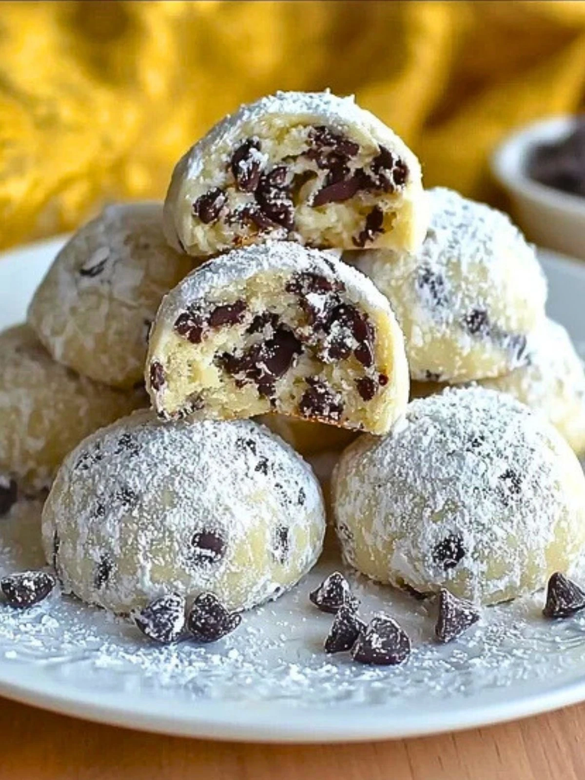 These Chocolate Chip Snowball Cookies are bite-sized delights that melt in your mouth with every crumbly, buttery bite. Dusted generously with powdered sugar, they look like little snowballs straight from a holiday dream. But the best part? The rich surprise of mini chocolate chips tucked into every tender center.