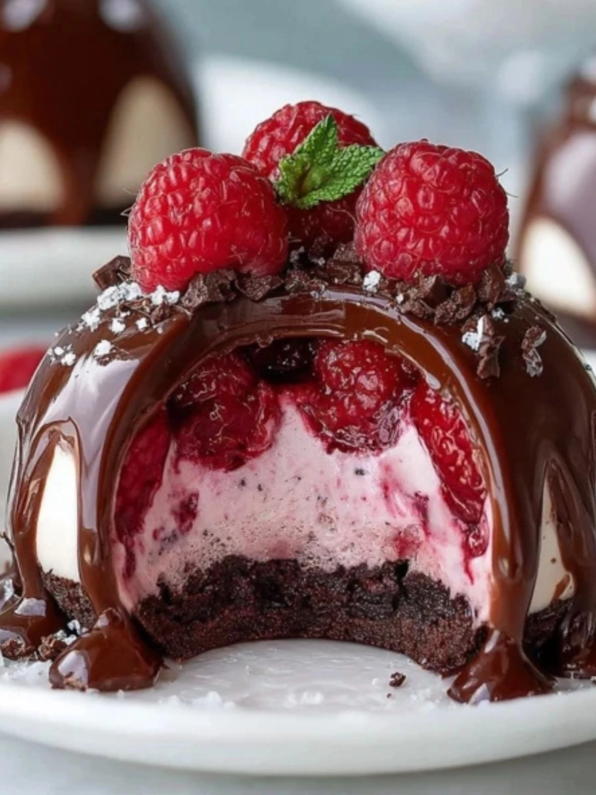 Carefully pop the domes out of the molds. Let them thaw in the fridge for 1-2 hours before serving. Optional: drizzle with extra melted chocolate or top with a fresh raspberry.