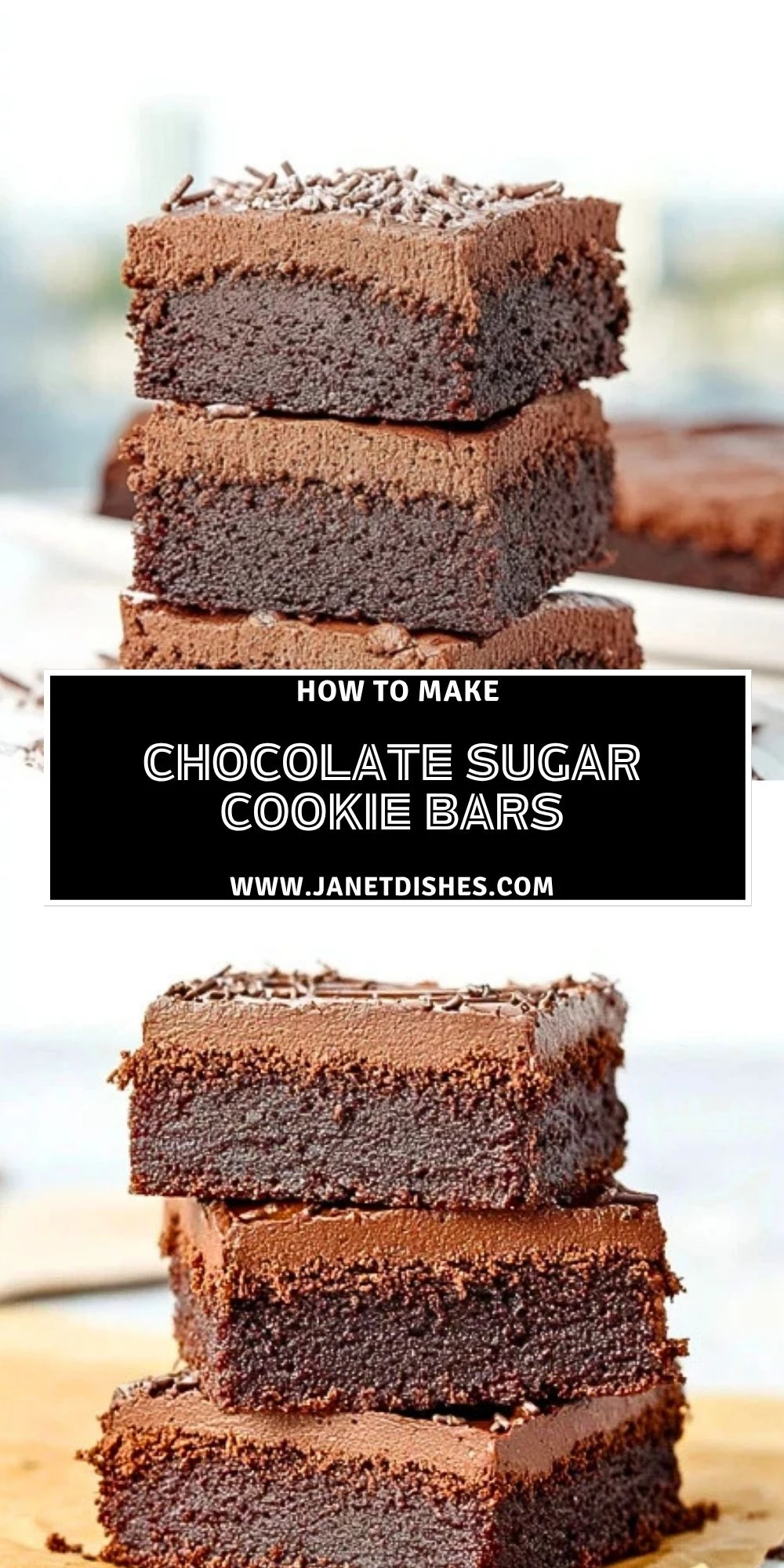 If you love rich, bakery-style treats like these Chocolate Sugar Cookie Bars, you might also enjoy a few more sweet favorites from Janet Dishes. Try Easter Cake Mix Cookie Bars for a colorful bar dessert that is easy to share, Classic French Butter Cookies when you want something buttery and simple, Peanut Butter S’mores Sandwich Cookies for an extra gooey cookie option, Churro Cheesecake Donut Cookies if you like playful dessert mashups, or Decadent Chocolate S’mores Cupcakes with Gooey Marshmallow Center when you are craving another chocolate dessert with a fun twist.