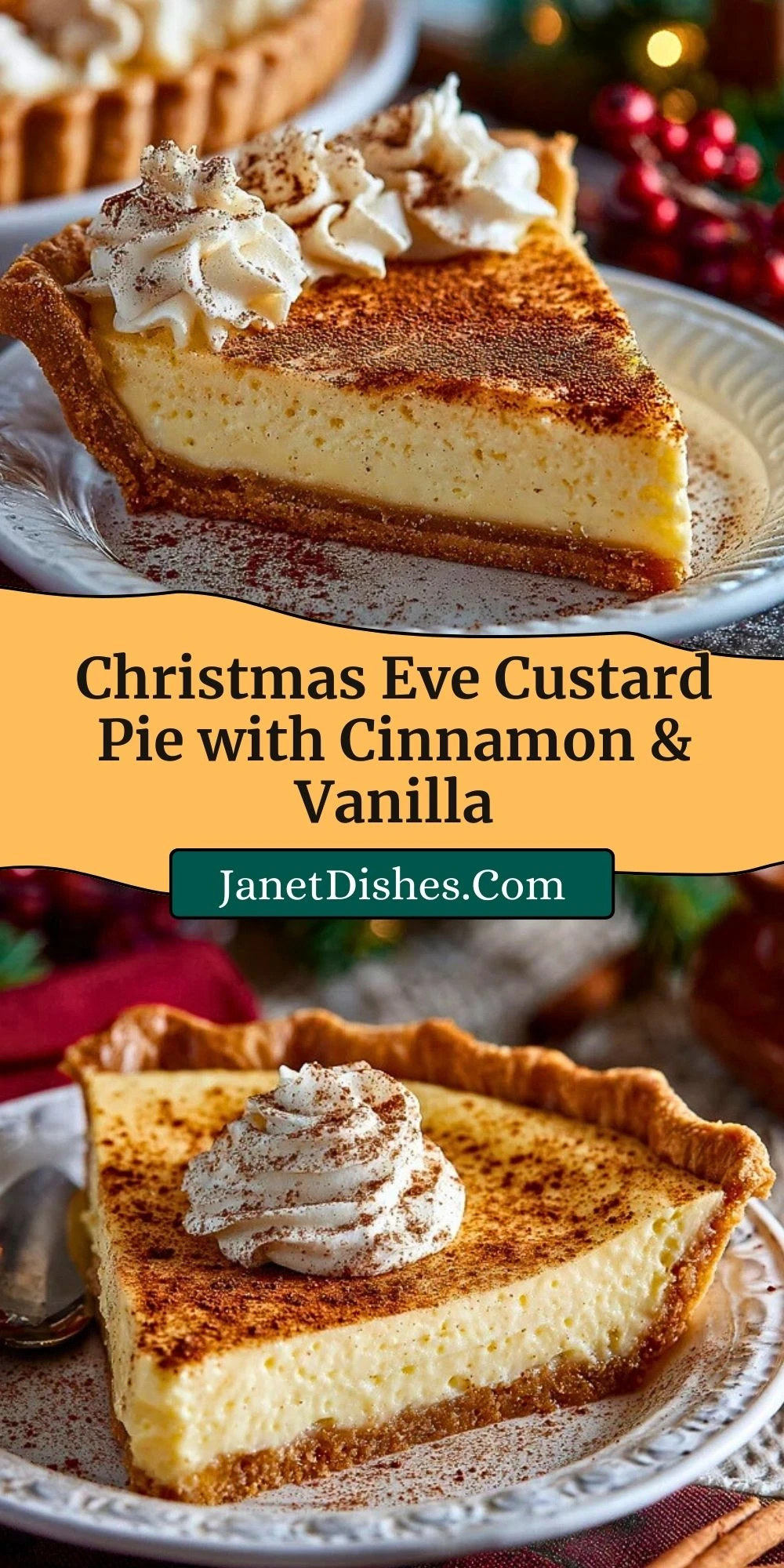 This Christmas Eve Custard Pie with Cinnamon & Vanilla is the perfect old-fashioned holiday dessert. Silky vanilla custard and warm cinnamon spice come together in a buttery crust for a nostalgic, easy-to-make treat. A festive pie recipe ideal for Christmas dinner or winter gatherings.