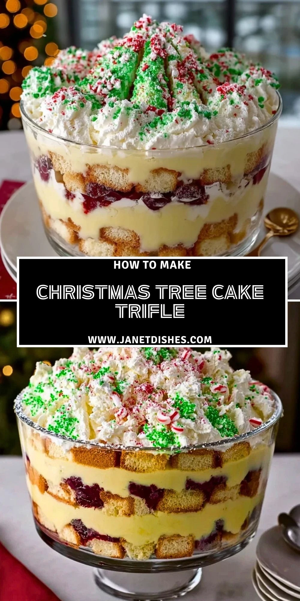 Top the trifle with a final swirl of whipped topping and a generous handful of holiday sprinkles. You can also garnish with a whole Christmas Tree Cake for extra flair.