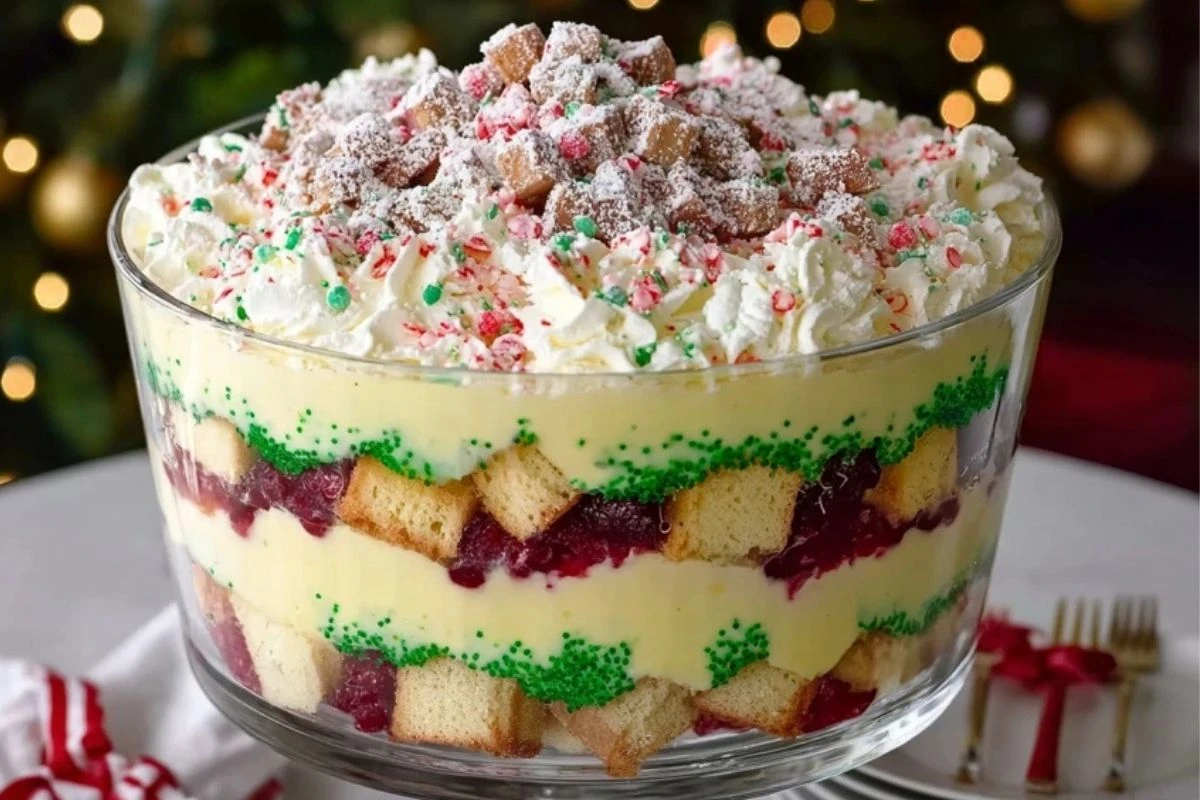 The Christmas Tree Cake Trifle is a festive, no-bake dessert that captures the joy of the holiday season in every creamy, colorful spoonful. Layers of iconic Little Debbie Christmas Tree Cakes, fluffy whipped cream, creamy pudding, and sprinkles come together in a glass trifle bowl for a stunning presentation that screams holiday cheer.