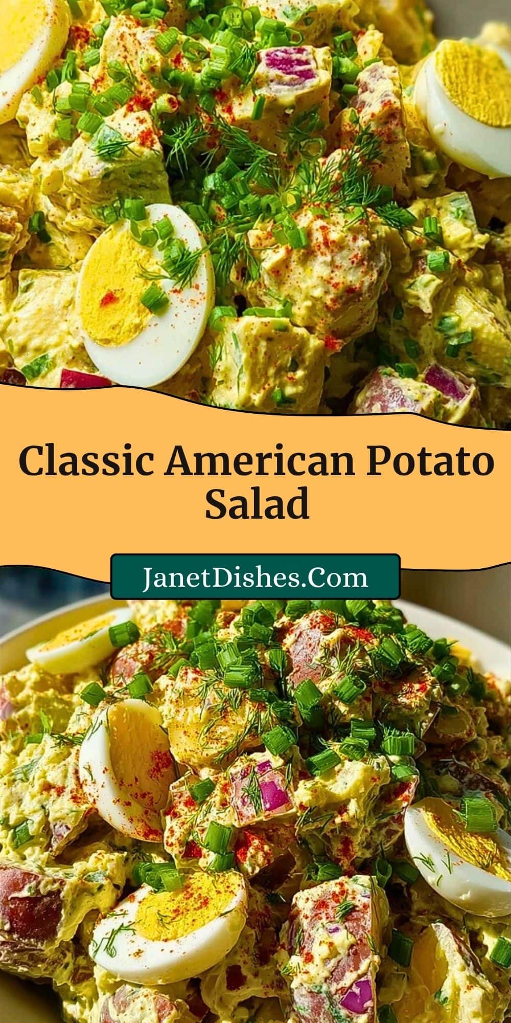 This Classic American Potato Salad recipe is the ultimate creamy, tangy side dish for BBQs, cookouts, and potlucks. Made with Yukon Gold potatoes, mayonnaise, mustard, and crisp veggies, this traditional potato salad is easy, delicious, and perfect for summer gatherings. Try this easy potato salad recipe today!