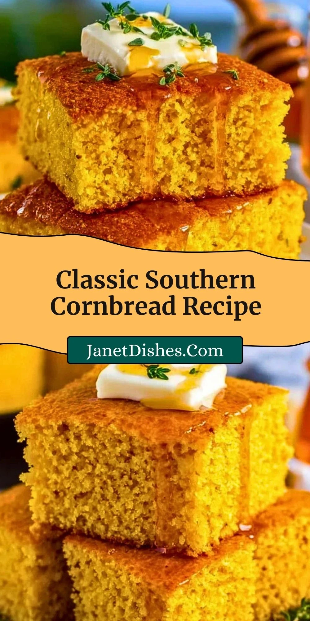 This Classic Southern Cornbread Recipe is a savory, golden skillet-baked favorite made with stone-ground cornmeal, buttermilk, and no sugar. Perfect with chili, collard greens, or fried chicken. Southern cornbread with crunchy edges and moist center – a must-try for your next dinner or holiday table.