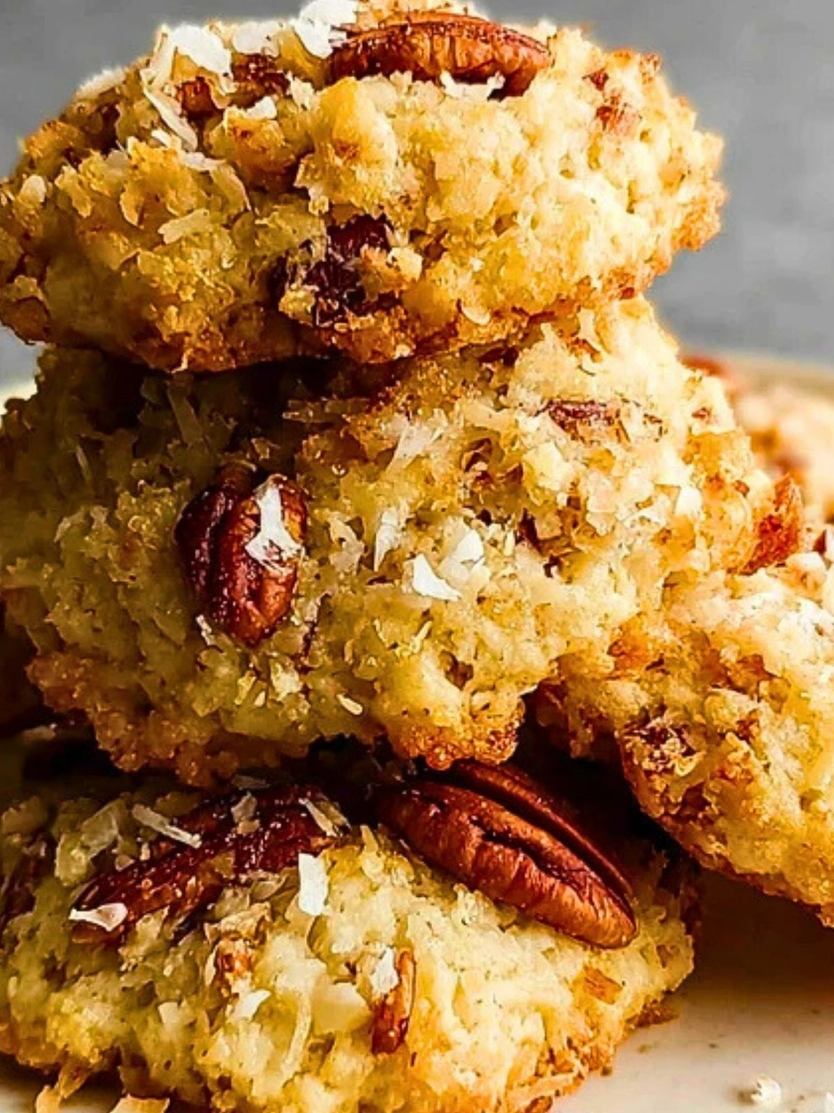 Each batch fills the kitchen with the warm, nutty aroma of toasted pecans and golden coconut, reminding you of everything good about baking from scratch. With their rustic look and unforgettable flavor, these cookies aren’t just a dessert—they’re a sweet little break from the ordinary.