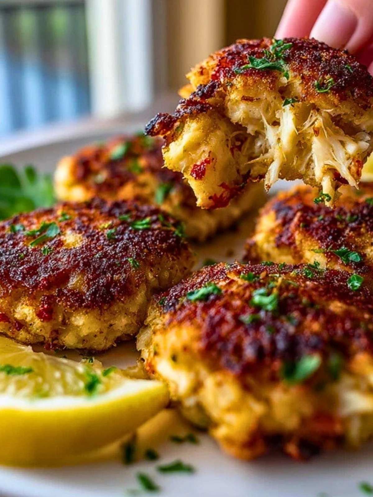This recipe makes 6 hearty crab cakes or up to 8 smaller ones, enough to feed 3–4 people as a main dish. Serve them hot and crisp right from the pan, ideally with a squeeze of fresh lemon or your favorite dipping sauce. For storing, let them cool completely and refrigerate in an airtight container for up to 2 days. You can also freeze uncooked patties—just place parchment between them and store in a zip-top bag for up to a month.