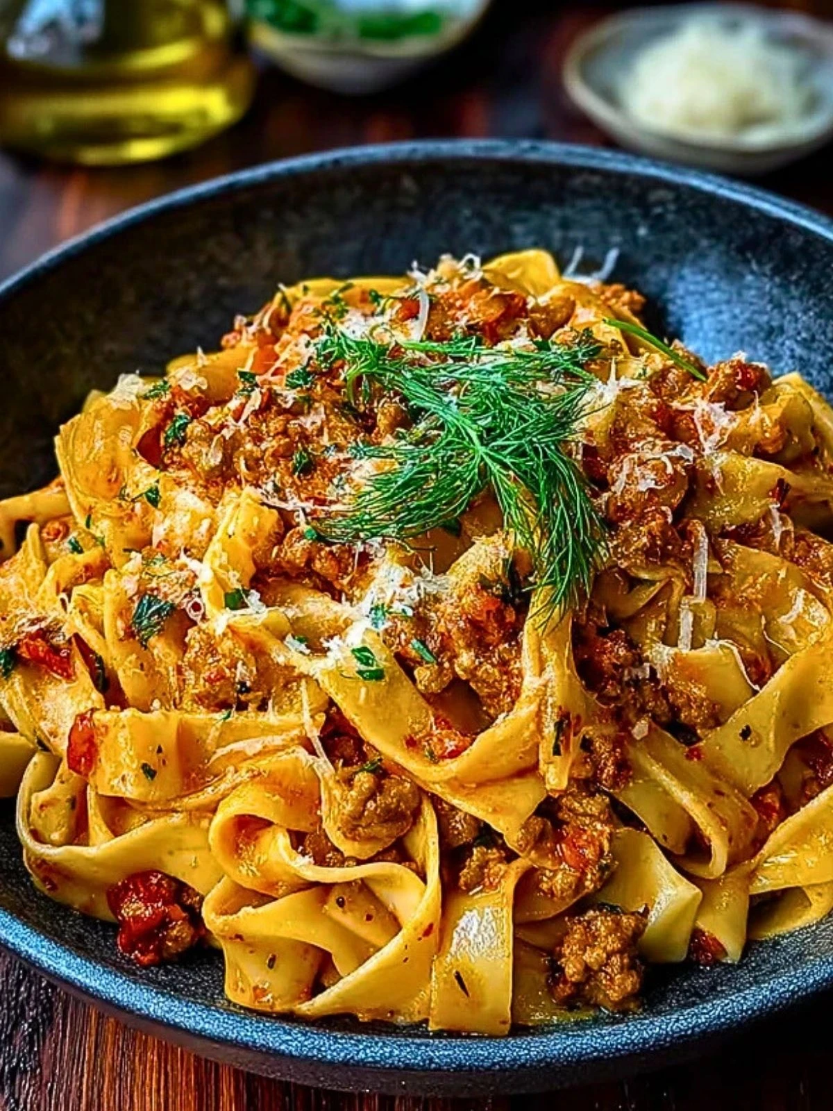 This creamy Calabrian chili pappardelle is a fiery yet cozy bowl of comfort that brings a touch of Southern Italy to your dinner table. The wide ribbons of pappardelle soak up a silky, spicy cream sauce that clings to every fold, while Italian sausage and fennel round it out with savory depth and subtle sweetness.