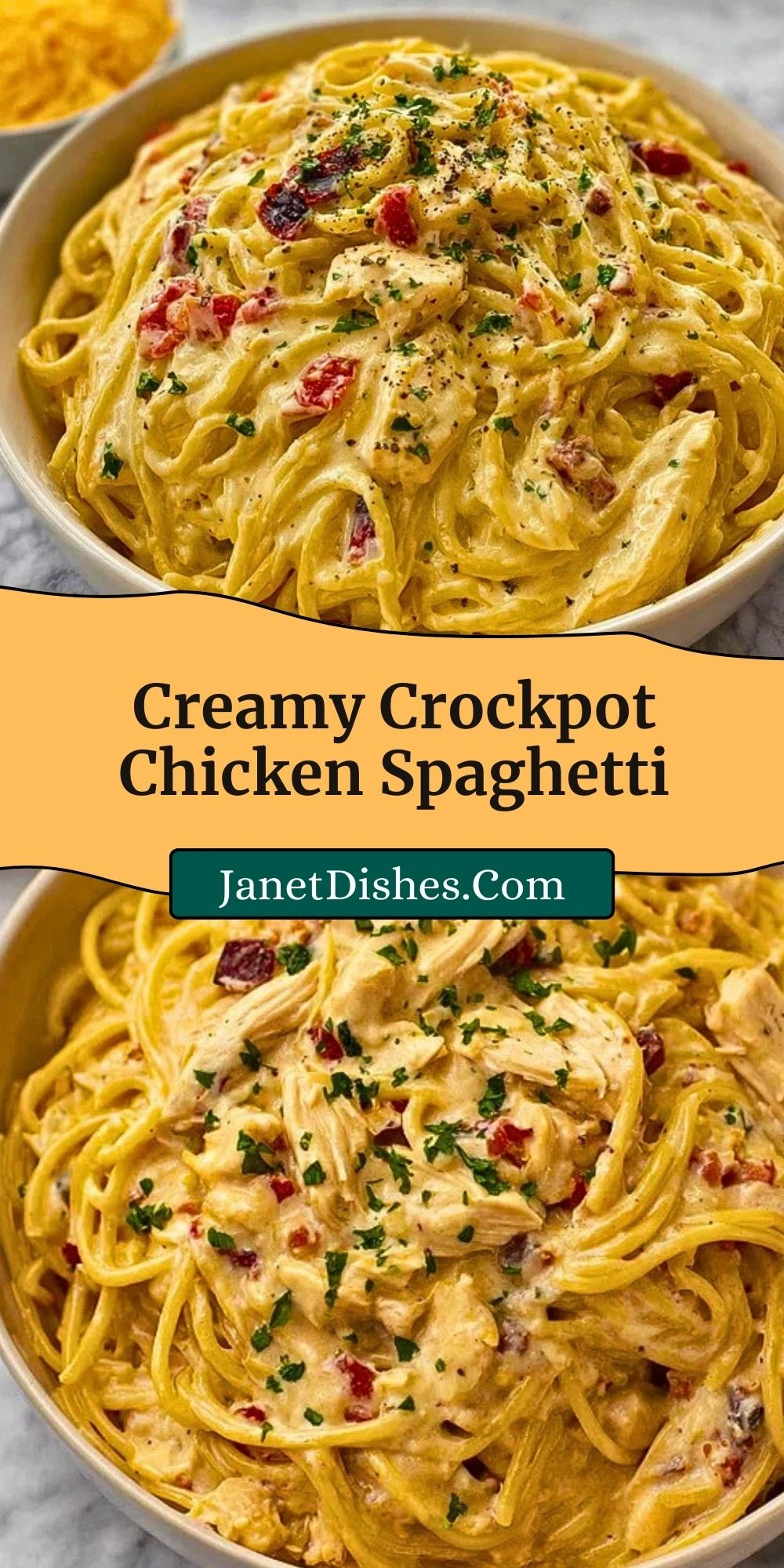 Creamy Crockpot Chicken Spaghetti is the ultimate comfort food for busy weeknights. This slow cooker chicken spaghetti is packed with shredded chicken, cheese, and a rich creamy sauce that’s kid-friendly and family-approved. A cheesy chicken pasta recipe that’s easy, creamy, and perfect for meal prep or gatherings.