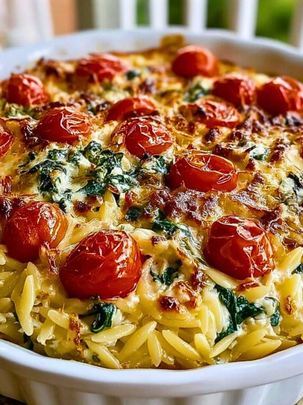 Transfer the skillet to a preheated oven at 375°F (190°C). Bake uncovered for 18 to 20 minutes, until the orzo is tender and the top is golden and bubbling.
