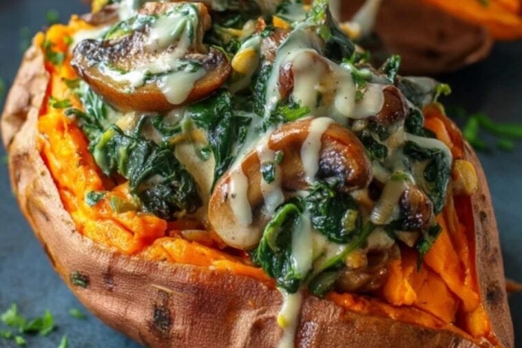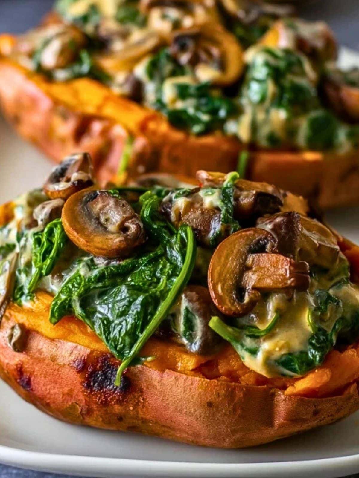 Creamy Mushroom and Spinach Stuffed Sweet Potatoes
