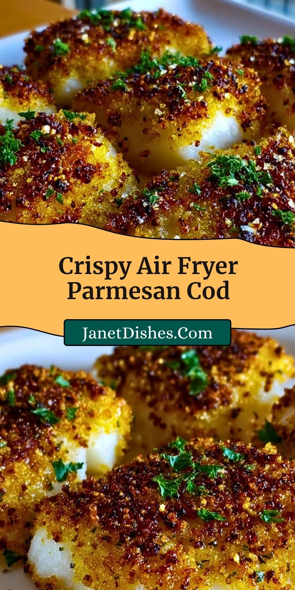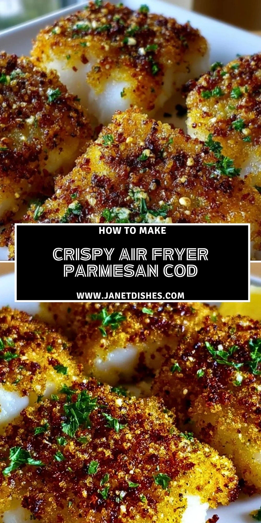 If you enjoyed this Crispy Air Fryer Parmesan Cod, you might like a few more savory favorites from Janet Dishes. Try the bright and creamy Creamy Lemon Butter Salmon Recipe for another easy seafood dinner. For a comforting side, Roasted Asparagus Recipe pairs beautifully with fish. If you want another crispy option, Air Fryer Okra is a great match for this kind of meal. For a cheesy side that feels extra cozy, Parmesan Roasted Potatoes are always a good idea. And if you are in the mood for another Parmesan favorite, take a look at Easy Parmesan Crusted Chicken Bites Recipe.