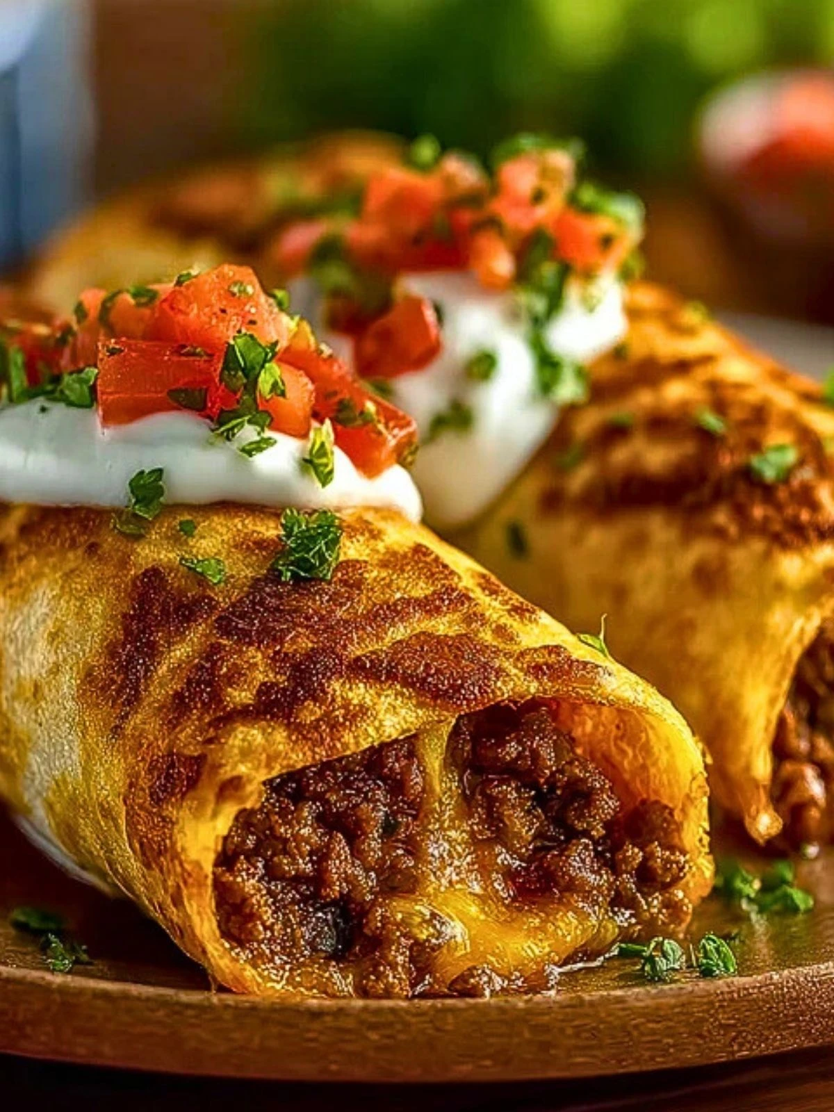 Crispy Cheesy Beef Chimichangas