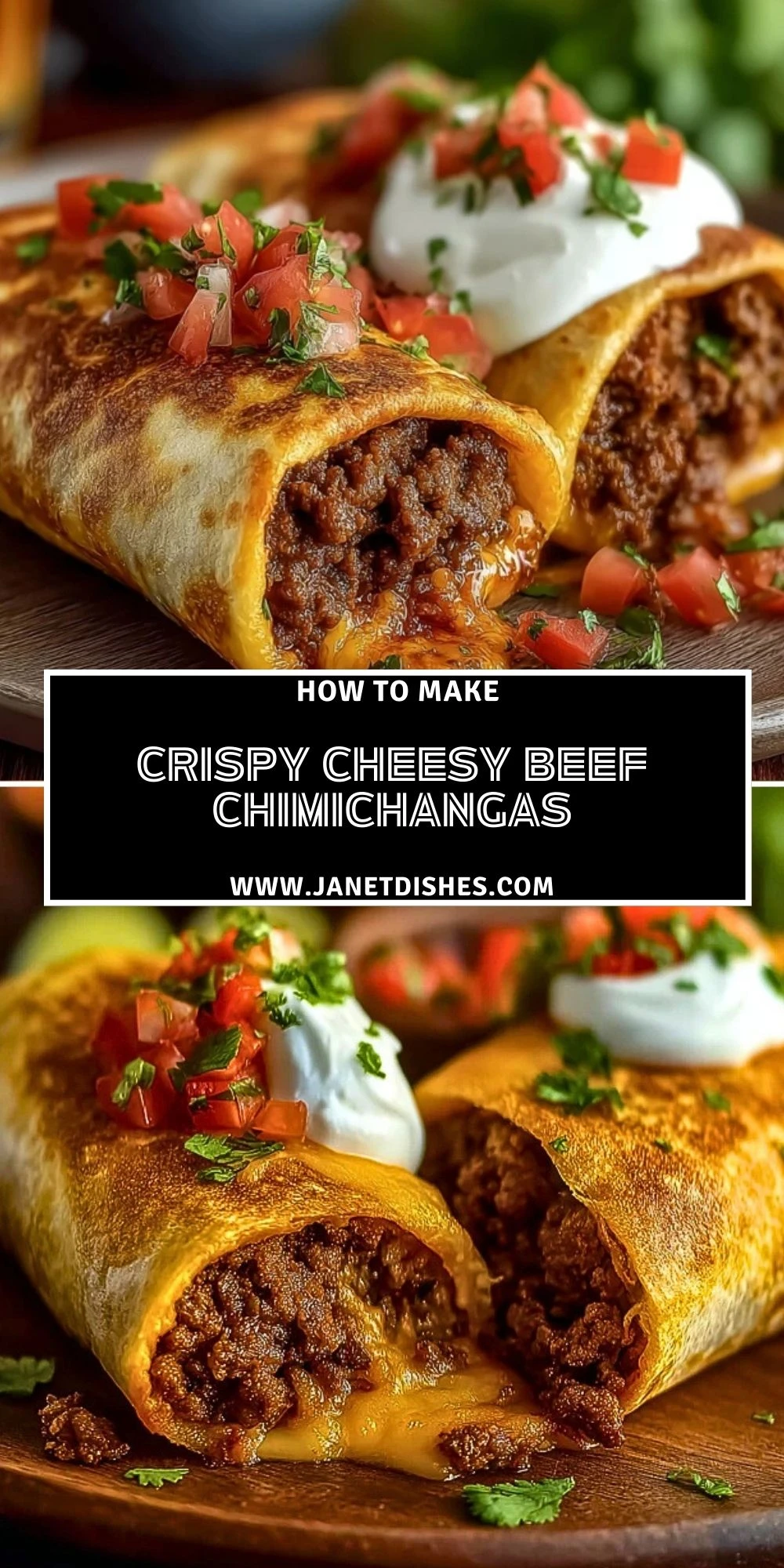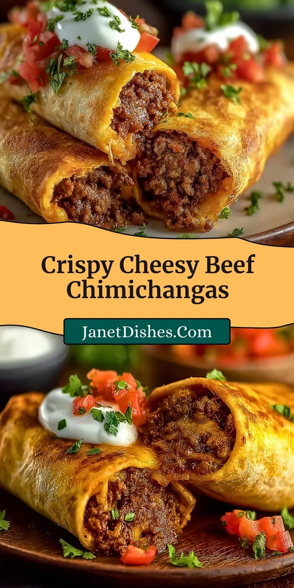 Crispy Cheesy Beef Chimichangas bring the fun of Tex-Mex home in the tastiest way possible. Easy to make, packed with flavor, and endlessly versatile, they’ll earn a regular spot in your dinner rotation. Serve them with your favorite sides, get creative with toppings, and enjoy the crunch.