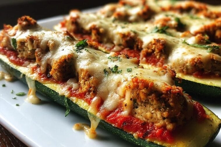Crispy Chicken Parmesan Stuffed Zucchini Boats