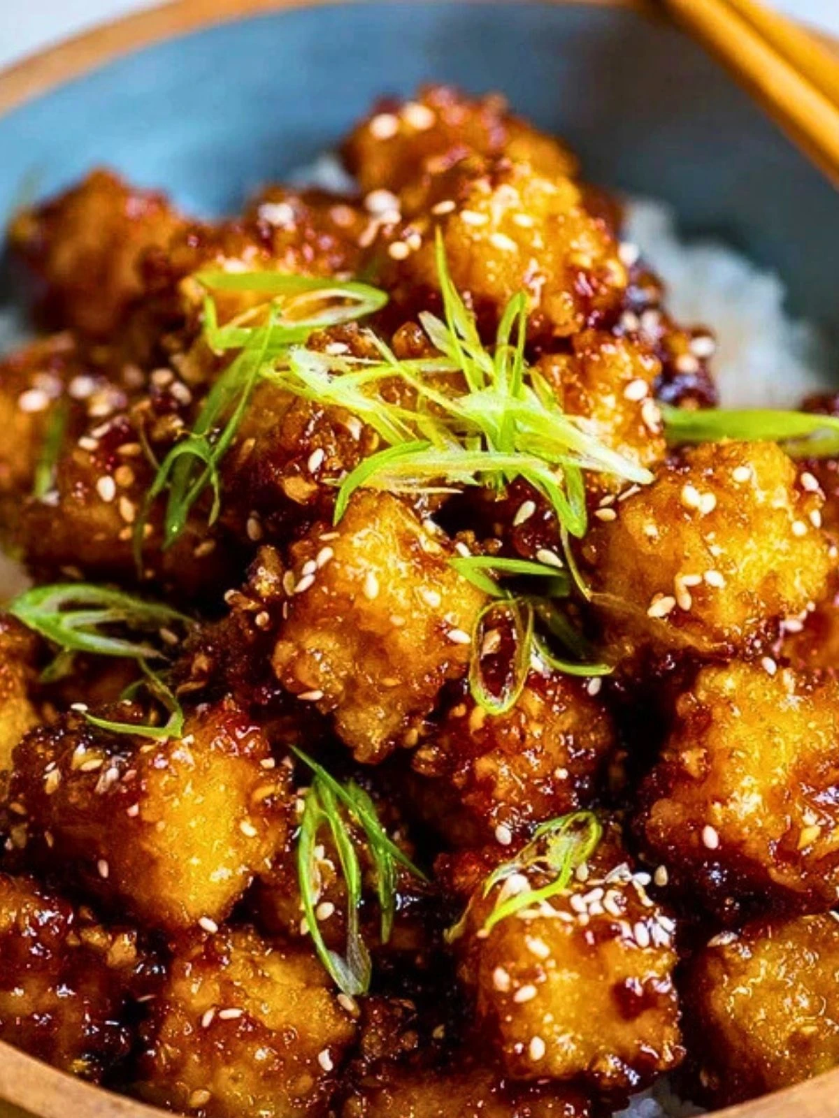 Return the crispy tofu to the pan and toss to coat in the sauce. Serve hot, garnished with sesame seeds or green onions if desired.
