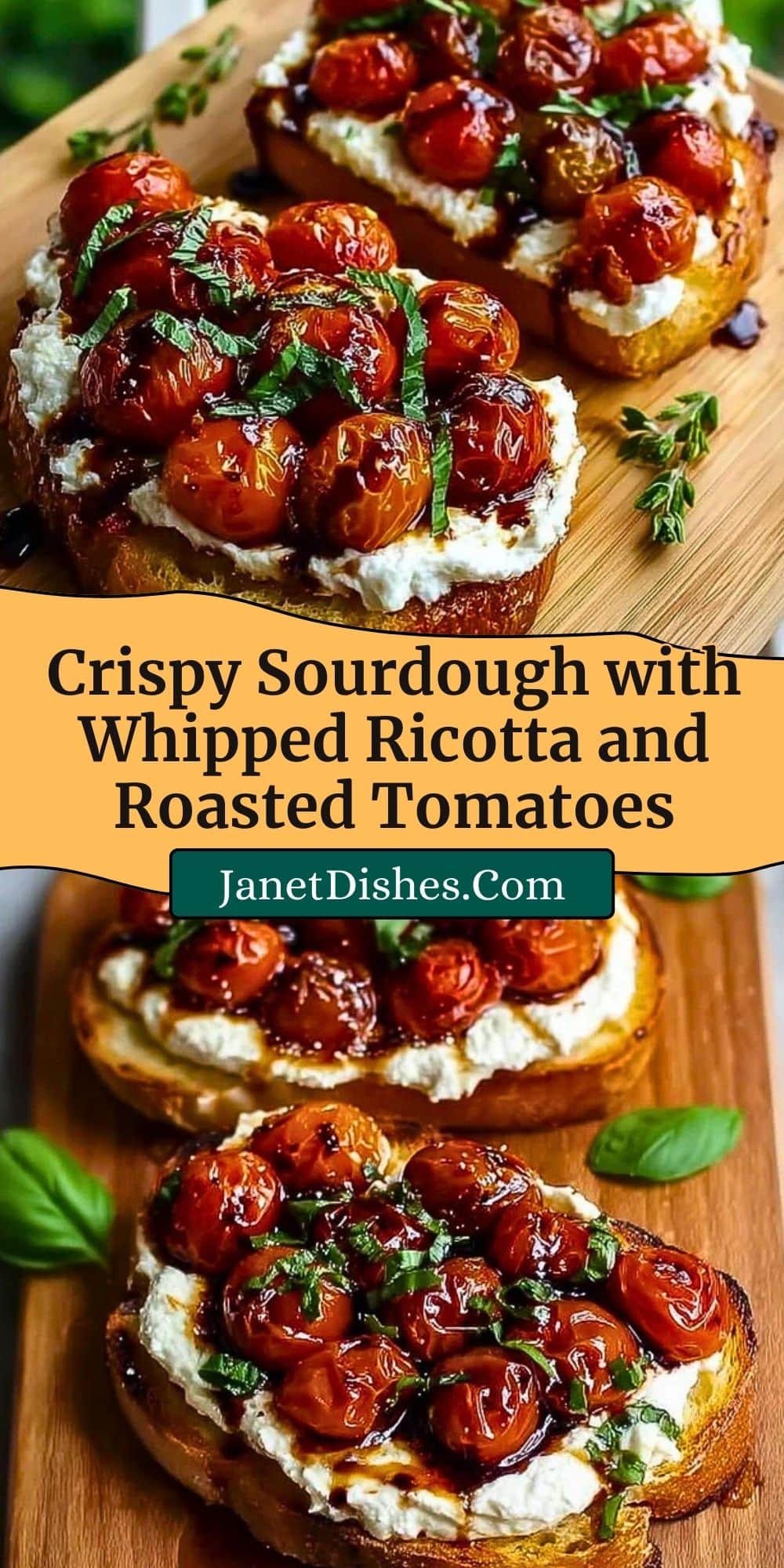 This crispy sourdough with whipped ricotta and roasted tomatoes is the ultimate fresh and easy appetizer or lunch idea. Toasted sourdough is topped with creamy whipped ricotta and sweet roasted cherry tomatoes for a rustic, crowd-pleasing dish. Perfect for brunch, light dinners, or entertaining, this recipe is vegetarian-friendly and packed with Mediterranean-inspired flavor.